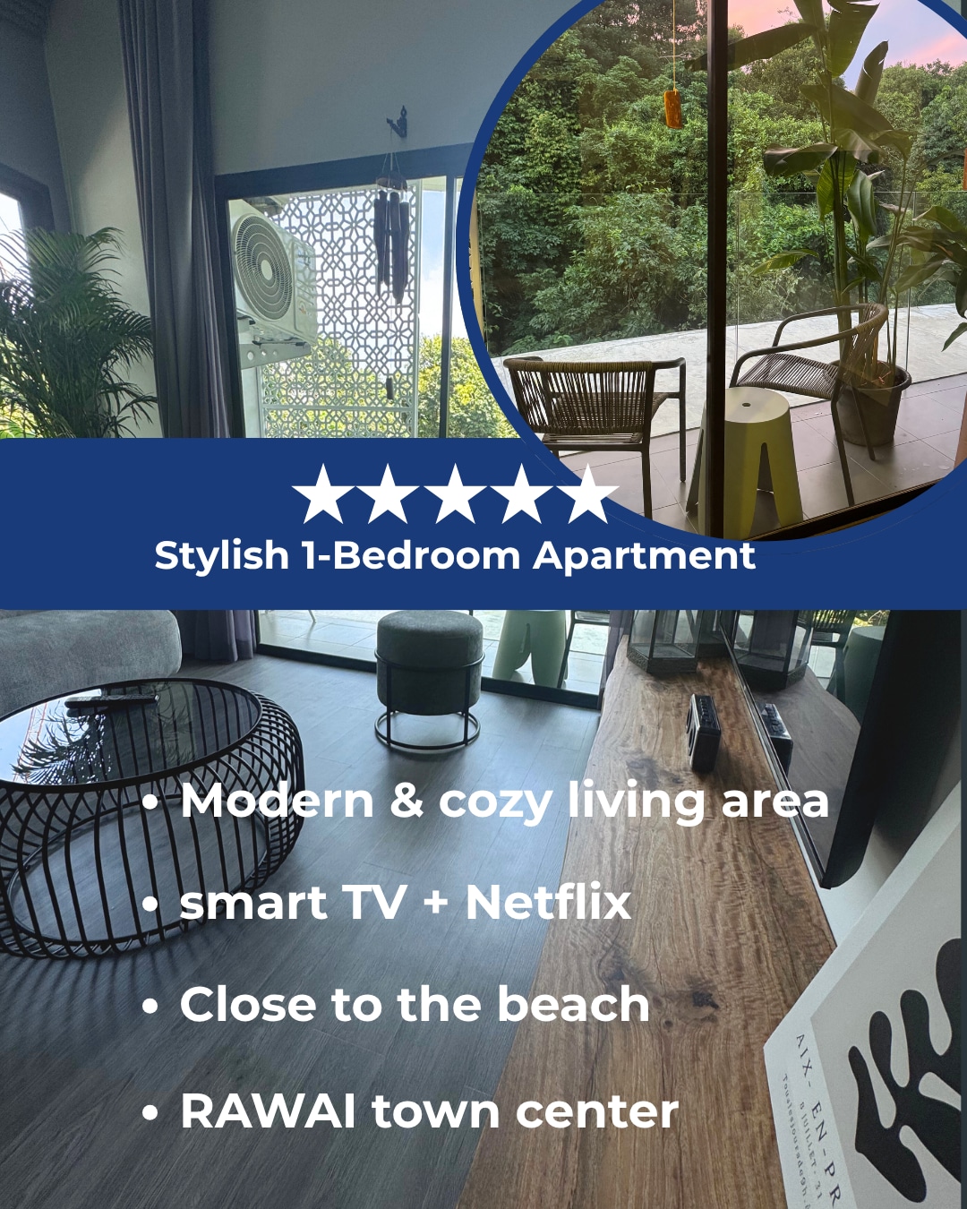 Umyili omangalisayo owenziwe ngeflethi evulekileyo neqaqambileyo, ehleli ngaselunxwemeni embindini wedolophu encinci entle nenomtsalane yaseRawai. Ndifuna le flethi ikungcamle ngobugcisa obuqhelekileyo baseThailand nezinto zendalo zasekuhlaleni, zidityaniswe nezinto ezihonjiswe zale mihla ibe ndiyathemba ukuba iza kukunceda ube nexesha elimnandi nelichanileyo lokuhlala kwakho eMzantsi Phuket. Umbane namanzi ziqukiwe kwixabiso olibonayo ngoko akukho nto ingakumbi onokuyibhatala.
