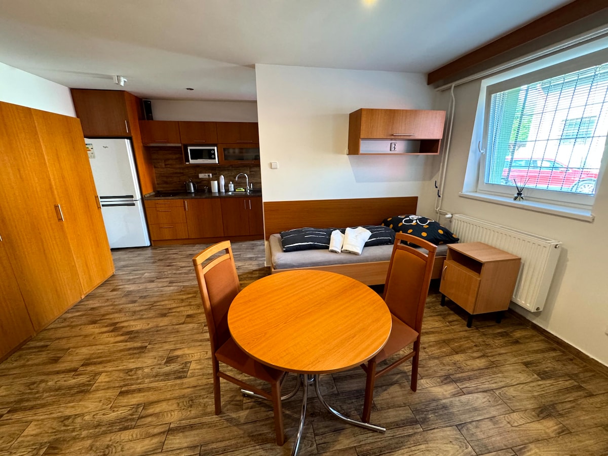 Iflethi okanye indlu ekwicomplex enekhitshi elincinci , lale mihla nelivulekile. Iyonke indawo eyi-28 sq metres. Ineebhedi ezimbini ezinokudityaniswa zibe yibhedi enye nesofa enye. I-Smart TV enkulu neintanethi engenazintambo. Igumbi lokuhlambela elineshawa. Ukusuka ngqo kwiflethi okanye indlu ekwicomplex ungaya kwiveranda evulekileyo. Indawo yokupaka yasimahla. Ukungena ngaphandle kwesitshixo kwiflethi okanye kwindlu ekwicomplex ukuze ufumane iikhowudi.