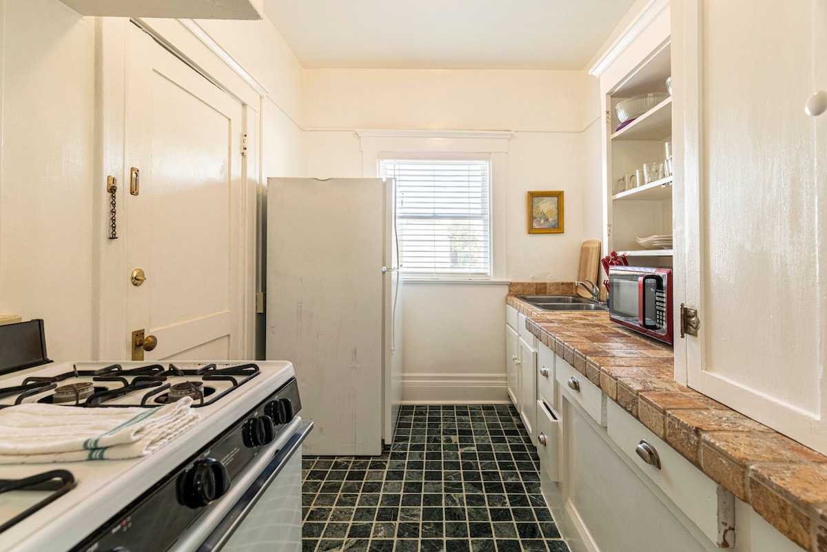 Iflethi entle kakhulu kwesinye sezona zakhiwo zembali zaseBakersfield. Ibuyiselwe ngokupheleleyo ngenxa yezinto ezithile zamaxesha athile. Izitena eziqinileyo, isakhiwo esineminyaka eyi-100nangaphezulu. Istudiyo esikhulu kakhulu/indawo enegumbi lokulala eliyi-1 enemigangatho yamaplanga aqinileyo nebhedi ENKULU. Kwakhona - ibhedi enesofa entle kakhulu, i-55" yeTV eneenkonzo zokudlala kwi-intanethi nekhitshi elinento yonke ikulindile kule flethi ikwindawo entle. Qaphela - kukho iiyunithi ezininzi ezinefenitshala kwesi sakhiwo ibe le yindawo ephakathi emalunga ne-750 sqft