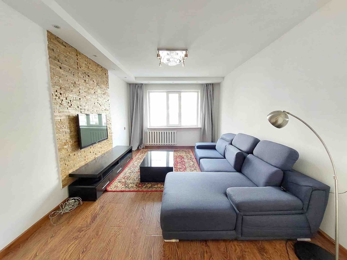 Welcome to our newly built,cozy apt located in one of the best central areas of UB, right next to Emart and within walking distance of Naadam Stadium etc. - 3 rooms(2 bedrooms + living room) - 2 separate bathrooms(extra convenience for families) - Ideal for up to 4 guests - Fully equipped kitchen, washing machine, hot water, smart TV, fast Wi-Fi etc. - Close to supermarket, cafes - Non Smoking, quiet, and safe environment A great place to relax or work while staying in UB. Welcome!