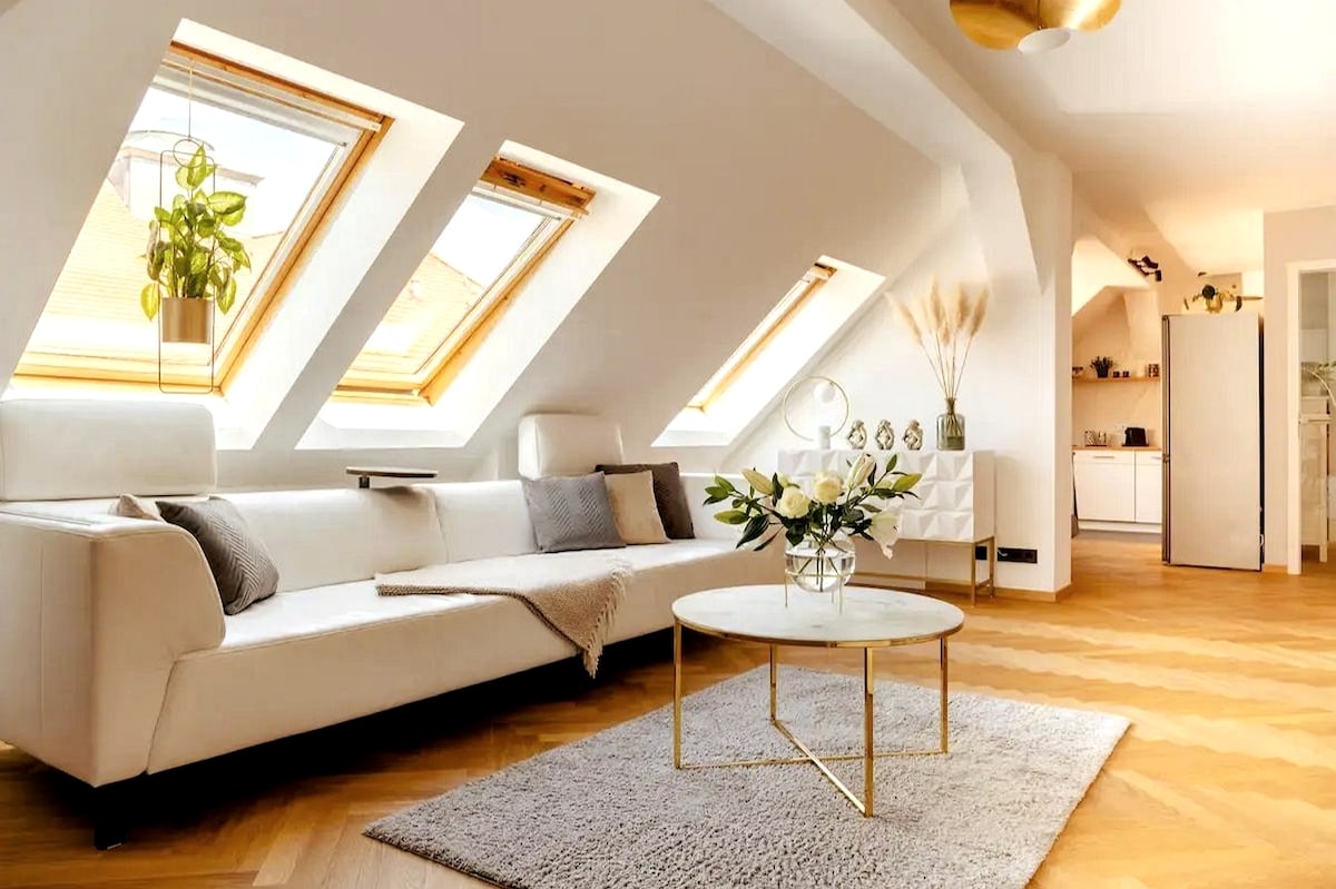Iflethi encinci, etofotofo ekwindawo esembindini kodwa ethe cwaka phakathi kweSchloßberg neMühlgraben. (imarike, idolophu, ulwazi lwesixeko, inqaba, ipaki yezilwanyana, isikhululo sikaloliwe, njl. zikumgama wokuhamba). Ukusuka kwibhedi ye-loft (ibhedi elala abantu ababini) ungabukela isibhakabhaka esineenkwenkwezi. Isofa inokuhlala ibhedi ekwayisofa. Siyakuvuyela ukukunika omnye umatrasi kunye nebhedi yomntwana.