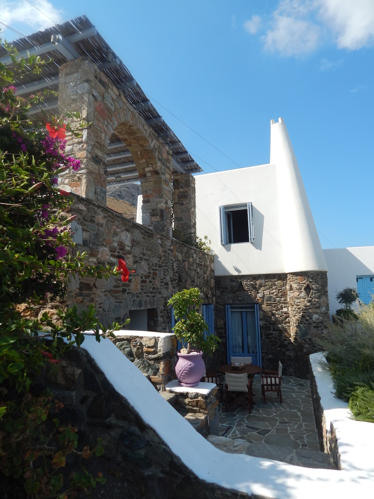 Le ndlu ilungele indalo eyi-55 sq.m. ikwimizuzu eyi-18 ngemoto ukusuka kwizibuko laseTinos, kwicala lasentshona lesiqithi, ekwindawo yomnquma kwaye igungxulelwe ngumhlaba onamatye kunye nokubona uLwandle iAreonan. Le fama yesintu iye yenziwe ngendlela encinci. Le ndawo ilungele isibini esithanda ukuhlala ilizwe nezinto eziyimfihlo. Inika ithuba lokuphumla kubomi besixeko, kwaye udibane ngokulula nokuzola kwendalo kunye nokucingisisa.