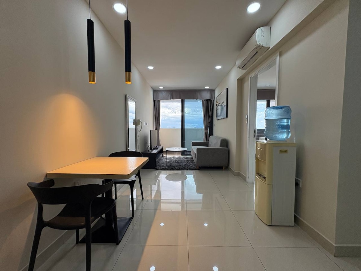 Ifunyanwa kwiNgingqi Ehamba Phnom Penh. Ifikeleleka kwiindawo ezithandwayo ezifana neRoyal Palace, iRiverside, iMarike yasekuhlaleni, i- Shopping Mall (i-Aeon/Soho Mall) kunye ne-Naga Casino (ukuhamba kwemizuzu eyi-1) I-Mega 55 storey high Residential Building kunye Shopping Mall Indawo entle, iflethi ingama-45sqm kwindawo. I-air-condition ngokupheleleyo ifenitshala enezinto ezinokusetyenziswa, umatshini wokuhlamba/umatshini wokuhlamba nowoku-ayina, iTV kunye njl. Ikhitshi elipheleleyo lilungiswe ngokupheka nokuseta isidlo sangokuhlwa. Izibonelelo ezimangalisayo -Infinity Pool + IJIM YANGAPHAKATHI Ukucoca Imihla Ngemihla Nge-WiFi entle