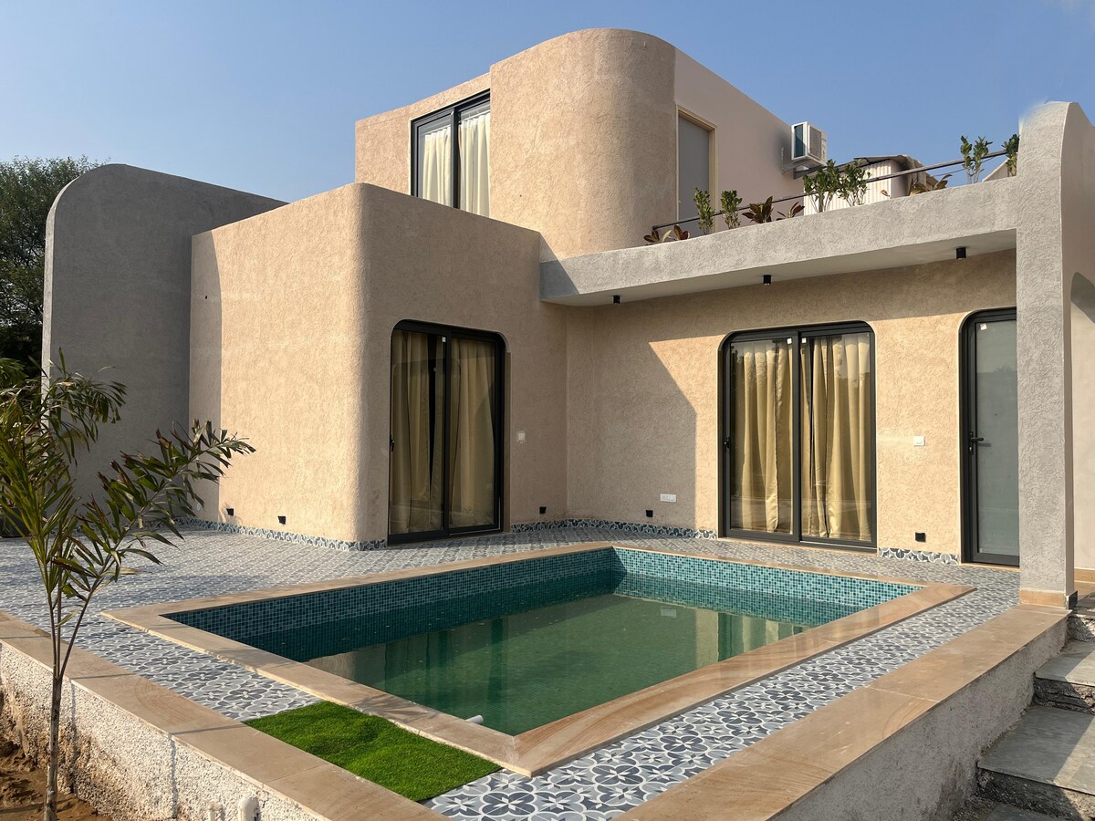 • <b> Luxury Aravalli Villa </b>: 15,000 sq ft, 3BHK, pet-friendly, private swimming pool & Jacuzzi • <b> Summer Edit</b> Exclusive Gifts for our Guests in April, May & June • <b> Complimentary</b>: Welcome Basket • <b> Gourmet Kitchen</b>: Fully equipped with Oven, and chef (on call). Zomato/Swiggy delivery available. • <b> Entertainment</b>: Jacuzzi, 4,000 sq ft lawn, pool table, indoor/outdoor games, 75" Smart TV. • <b> Full-Service</b>: 24/7 caretaker, chef available, parking for 5 cars.
