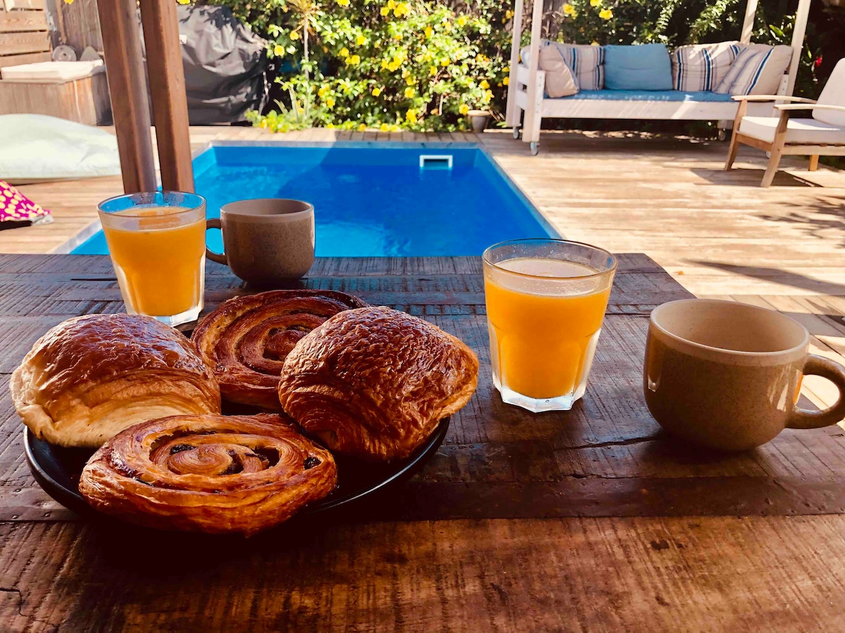 Intsonkothileyo yezindlu ezinevaranda eziyi-3 ezinomtsalane ezixhotyiswe ngokupheleleyo kwindawo ezolileyo nekhuselekileyo. Uhlalise ngepuli entle esetyenziswa ngumntu wonke eyenza kube mnandi ukuhlala kwakho. Ifumaneka kwimizuzu eyi-7 ngemoto ukusuka edolophini eSaint-Pierre, kwiNdlela engcwele kunye nolwandle. Uza kubona uMzantsi Afrika, uza kuyixabisa indlela yayo yokuphila kunye nokubuka kwakhe iindwendwe ngendlela efudumeleyo. Ungahamba phambi kwee-panoramas ezintle nelifa elityebileyo. Intaba-mlilo enomtsalane, i-sircus enomtsalane, kunye neendawo ezigqwesileyo...