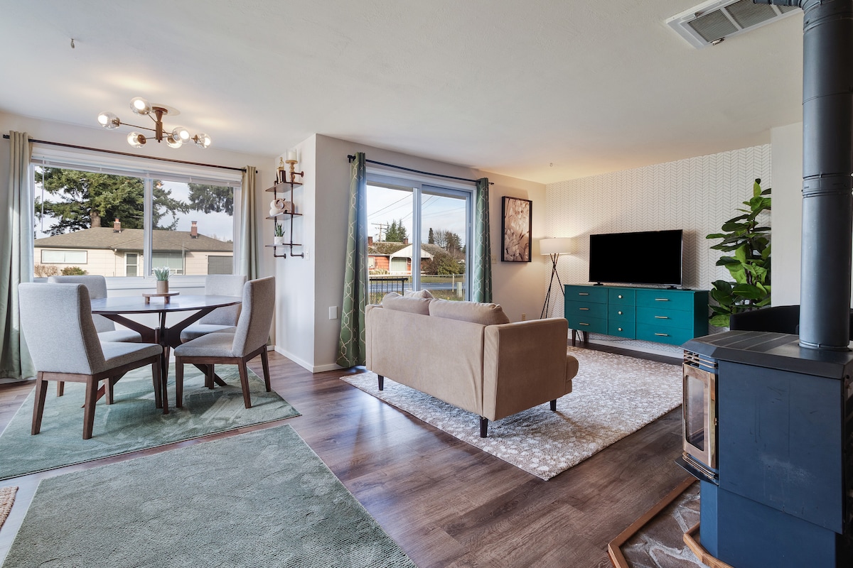 Igumbi lethu Lokulala likwingingqi yaseTacoma eFernhill, malunga nemizuzu eyi-15 ngemoto ukuya eDowntown Tacoma. Indawo yokungena kwigumbi lokulala inekhitshi elincinci, ifriji , i-microwave, umatshini wokwenza ikofu, ikofu encinci. Eli gumbi lisebenza njengegumbi lokulala lesibini ibe linebhedi enamawele. Elona gumbi lokulala linebhedi enkulu nebhedi enamawele, iHD Roku TV, iikhabhathi ezinkulu nedesika. Indawo yokungena yabucala, indawo yokupaka esitratweni. Ukungatshayi. Igumbi Lakho Lokuhlambela elinezinto zokuhlambela ezifumanekayo.