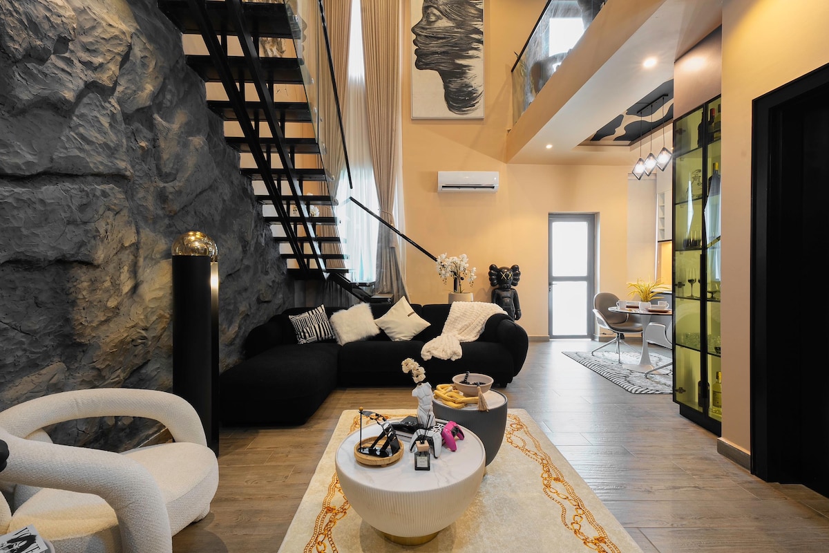 We’re thrilled to introduce STAYS BY TAGUS, our luxurious shortlet apartment nestled in the secure and tranquil surroundings of Lekki, Lagos. This exquisite 3-bedroom penthouse suite is located within the exclusive Pinnock Beach Estate. With lush greenery, the stunning 180-degree terrace balcony overlooking the Lagoon, is a perfect spot for an evening drink. Experience comfort and elegance in a setting designed for relaxation. We look forward to hosting you!