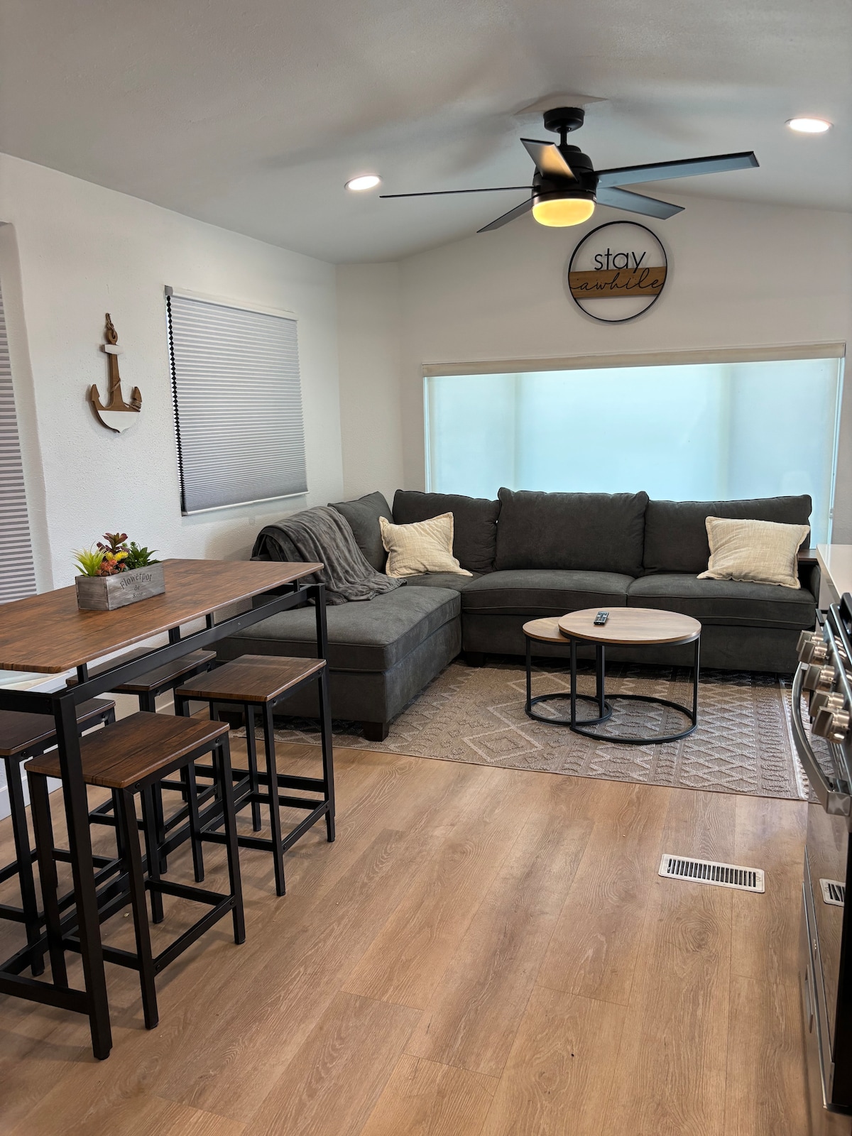 Le ndawo ilungiswe kakuhle eyi-672 sq ft phezulu kwigumbi elinye lokulala elinye iflethi yokuhlambela ineekhawuntara zasekhitshini zegranite ibe ikufuphi ngeenyawo ukuya eRotary Park, echibini, eLondon Bridge, kwibala legalufa, nakwindawo yokutyela emnandi. I-condo yethu ilala abantu abane ibe inegumbi lokulala elinebhedi enkulu neTV. Eyona ndawo yokuhlala inebhedi enkulu. Ezinye izinto ziquka, i-wifi yasimahla, umatshini wokuhlamba nowokomisa impahla omncinci, nokungena kwikhabhathi. Sizimisele ukuba wenze iinkumbulo ezintle zeLake Havasu