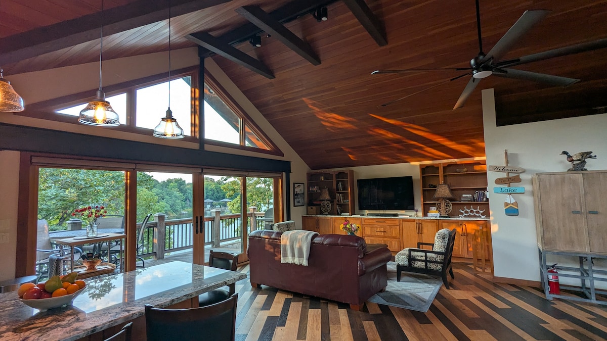 "This is IT!" 3mm Million Dollar Main Channel Panoramic View, Walk-in Level Entry, Two 58"Roku TV 's, King Sized Bed, Electric Fireplace, Screened-in Deck, Electric Blackstone Griddle, Salt-water Pool, Deck Furniture, Papasan Lounger, Keurig Coffee, 400mbps WiFi... and a hammock! Iholide efanelekileyo yabantu abathandanayo, kodwa inkulu ngokwaneleyo kwintsapho encinci... singathanda ukukwamkela eLakescape Romantic Retreat! Sikholelwa ukuba iflethi yethu ihlola iibhokisi ezininzi kangangokuba uza kuthi, njengathi, "Nantso ke!"