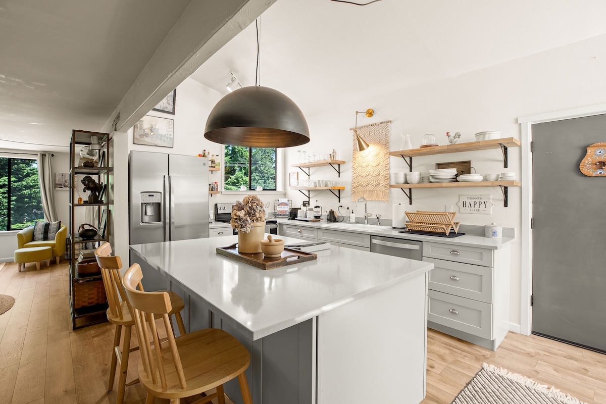 Shiya yonke into oyithandayo uze ugcwalise kule ndawo ihonjiswe kakuhle. Le ndawo yokuzikhupha kufutshane neDouble Bluff Beach inamagumbi okulala ayi-2 avulekileyo, ibhafu eyi-1 ibe ilungiswe ngokupheleleyo ngo-2022. Le yindawo yokuzikhupha kwabo banqwenela ukuphinda baphumle ngoxa besonwabela zonke izinto ezifumaneka kwisiqithi saseWhidbey. Phuza ikofu yasekuhlaleni ngoxa ujonge iindawo eziyi-180 ze-Bay engenamsebenzi, eMt. I-Rainier, kunye neefama ezintle. Hamba uye eDeer Lagoon ukuze ujonge iintlobo zeentaka ezingaphezu kwe-170 ezithatha indawo yokuhlala.