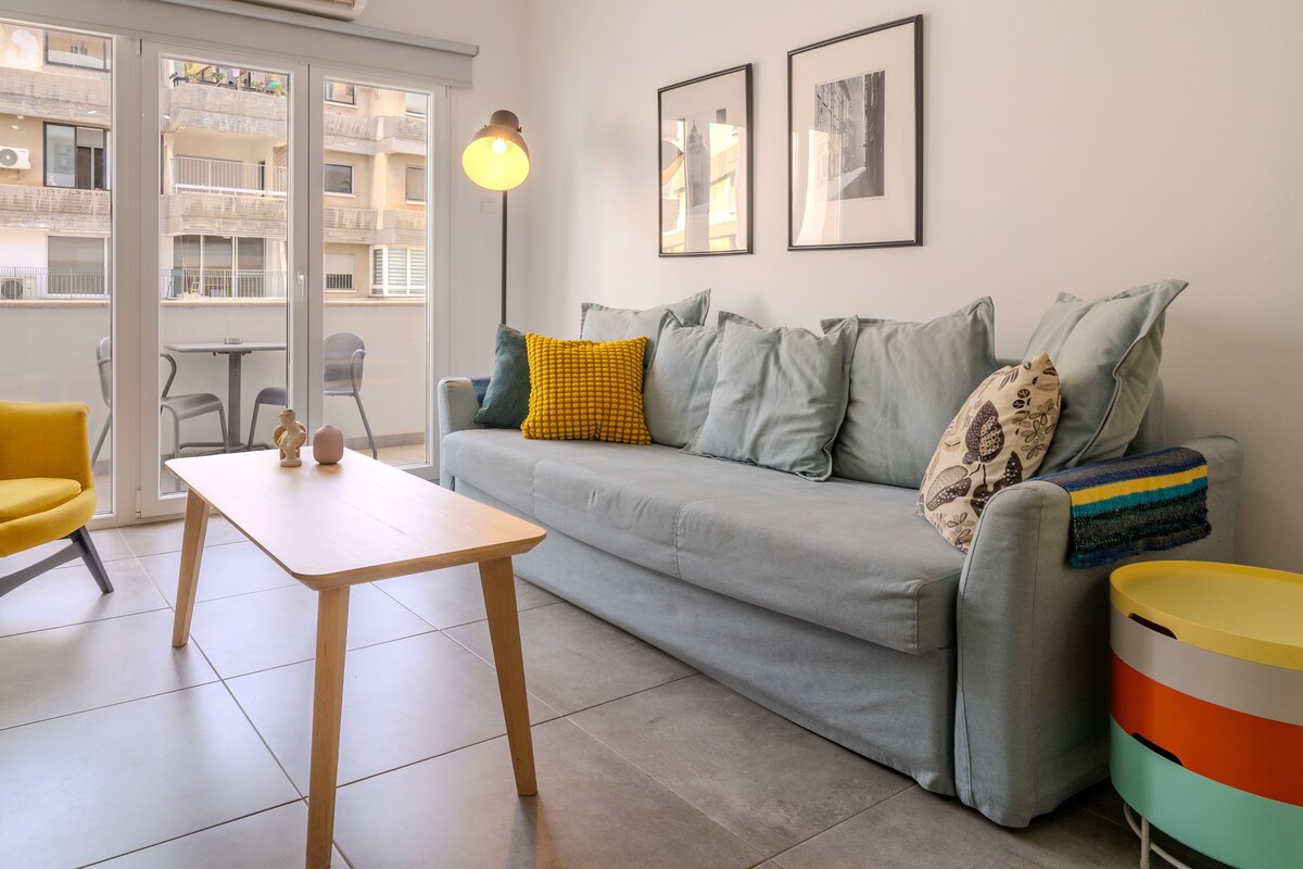 Iflethi yam yonke, inegumbi lokuhlala eliyi-1, Igumbi lokulala eliyi-1, igumbi lokuhlambela eliyi-1, Ikhitshieliyi-1 elingaphambili lebhalkhoni, ilungele izibini, abantu abahamba bodwa, abahambi bezoshishino. Abantwana >12, hlala simahla. Ukufikelela: isinyusi nezitepsi, zeendwendwe ezineengxaki zokuhamba. Le flethi yi-55 sq. m. Isantya se-Intanethi 150Mbps. Isidlo sakusasa sifumaneka kwiivenkile zekofu ezixabisekileyo ezikufutshane kunye nemizuzu eyi-4 yokuhamba ukuya kuLwandle oluBlue lweMeditera. Iivenkile zokutyela, ubomi basebusukukunye nemarike encinci kufutshane. Ixesha lokuphuma: 12:00hrs - Ngena:15:00.