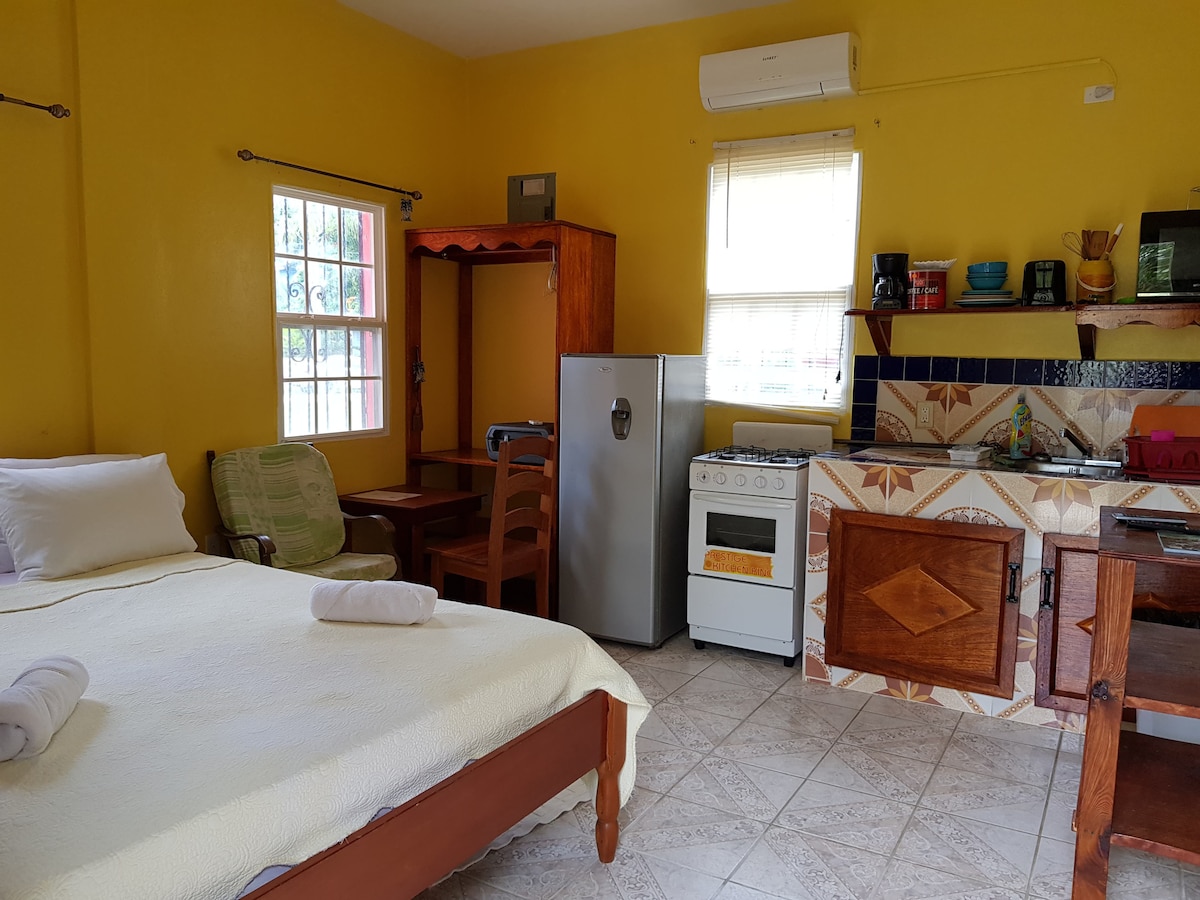 This comfortable and updated unit is part of a duplex cabana located in the heart of Placencia Village, very close to shopping and restaurants. Step out of your door and you are right there! The beach is also only a few minutes walk away. Its modern, bright design feels fresh and clean. You will surely have a relaxing and pleasant stay. The room features a comfortable queen size bed and has all amenities needed (A/C, Wi-Fi, TV, a safety deposit box as well as a comfy chair and a desk).