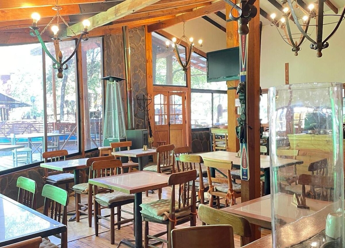 Indlu yamaplanga kwii-tranches, kwiikhilomitha eziyi-11 ukusuka eChillan- Nevados de Chillan hot springs. Umoya, ibhedi elala abantu ababini, ikhitshi laseMerika, ifriji, ifriji, ukufudumeza iinkuni, ukufudumeza iinkuni, umatshini wokomisa iinwele, izinto zebhedi, izinto zebhedi, i-crockery epheleleyo, i-grill, i-wifi, i-TV 32 ene-intanethi, i-Netflix, i-Amazon Prime, i-Disney Plus.
