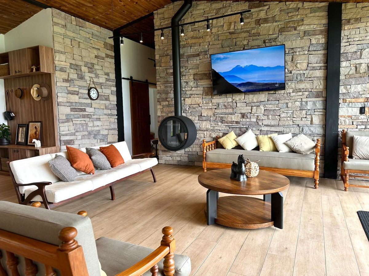 Indawo yokuhlala efudumeleyo neyale mihla embindini weentaba, iAndean moorlands, ejikelezwe yindalo, iintyatyambo nezinto ezintle ezibonakalayo. Le ndawo yomyili wezoshishino idibanisa iifestile ezinkulu, iindonga zezitena neesilingi zamaplanga ukuze ibe nexesha elimnandi nelikhanyayo. Ilungele ukukhupha iiplagi, ukuphumla nokonwabela ukutshona kwelanga okukhethekileyo kwigumbi okanye ukuhlala kamnandi egumbini. Zonke iikona zenzelwe ukukwenza uzive uxolile, ukhuthazekile kwaye unento yokwenza nokusingqongileyo.