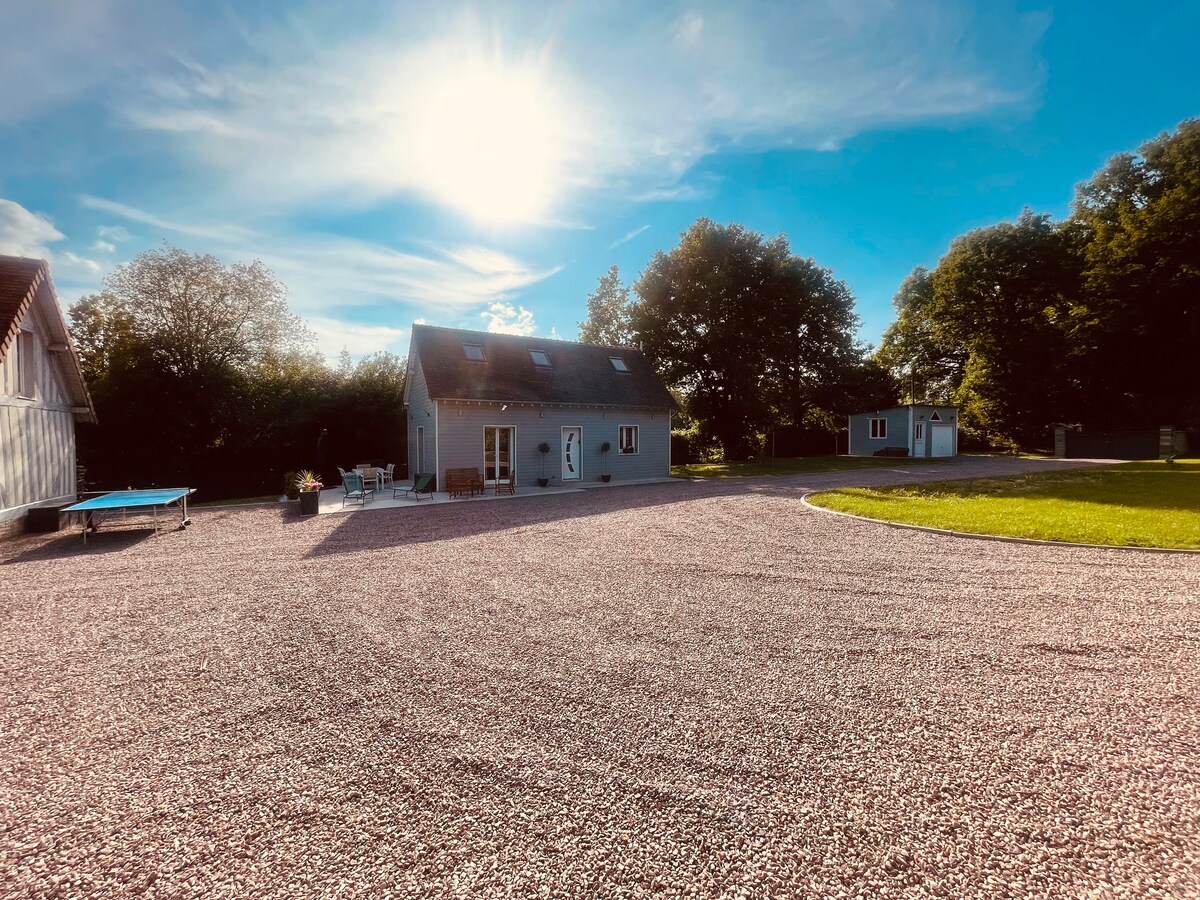 Profitez en famille ou entre amis de notre belle maison normande de 180m², entièrement rénovée. Parfaite en été comme en hiver (cheminée et poêle) Tout est là pour que vous passiez un bon moment: ping pong, buts de foot, pétanque, billard, baby-foot, jeux d’arcade, trampoline et beaucoup de jeux de société. Idéalement située à 5mn de l'A13, tout en étant au calme absolu. 10mn de Pont l'Evèque, Beaumont en Auge, Bonnebosc. 20mn de Deauville/Villers/Houlgate.