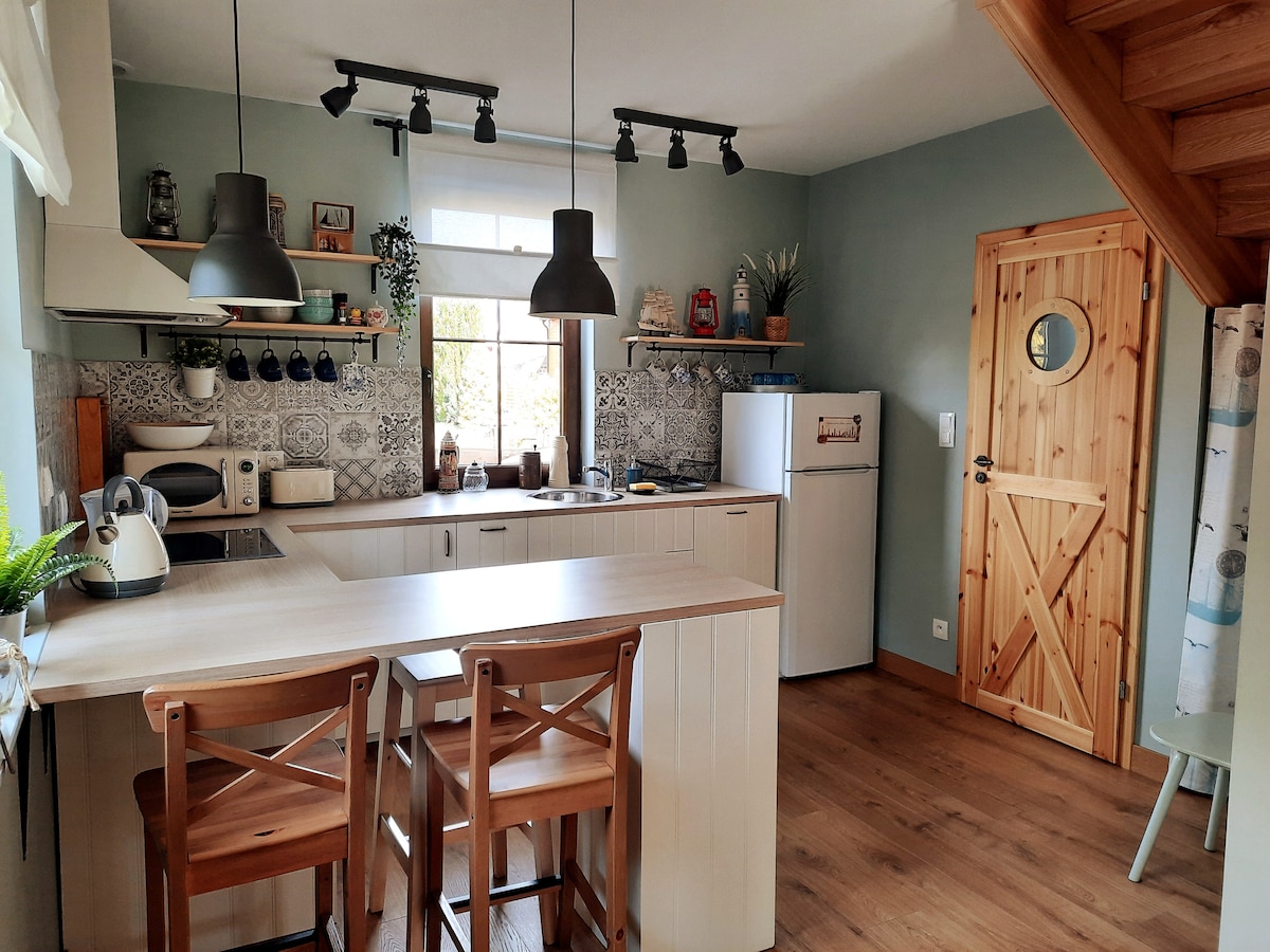 Indlu yamaplanga eyahlukileyo ngaselwandle. I-atmospheric, eyakhiwe ngokuqwalasela iinkcukacha. Ilungele iiholide zasehlotyeni, iiholide zasebusika, kunye neholide yempela-veki phezu koLwandle lwaseBaltic. Ikwindawo enkulu (engaphezu kwe-6,000 m2) kude neyona ndlela iphambili, ijikelezwe kwicala ngalinye ngokuluhlaza. Iholide emnandi iza kunika uxolo, ukuzola nokusondela kunxweme oluhle eDębki. Ilungele iintsapho kunye namaqela abahlobo, afumaneka kumaqela amancinci okanye izibini.