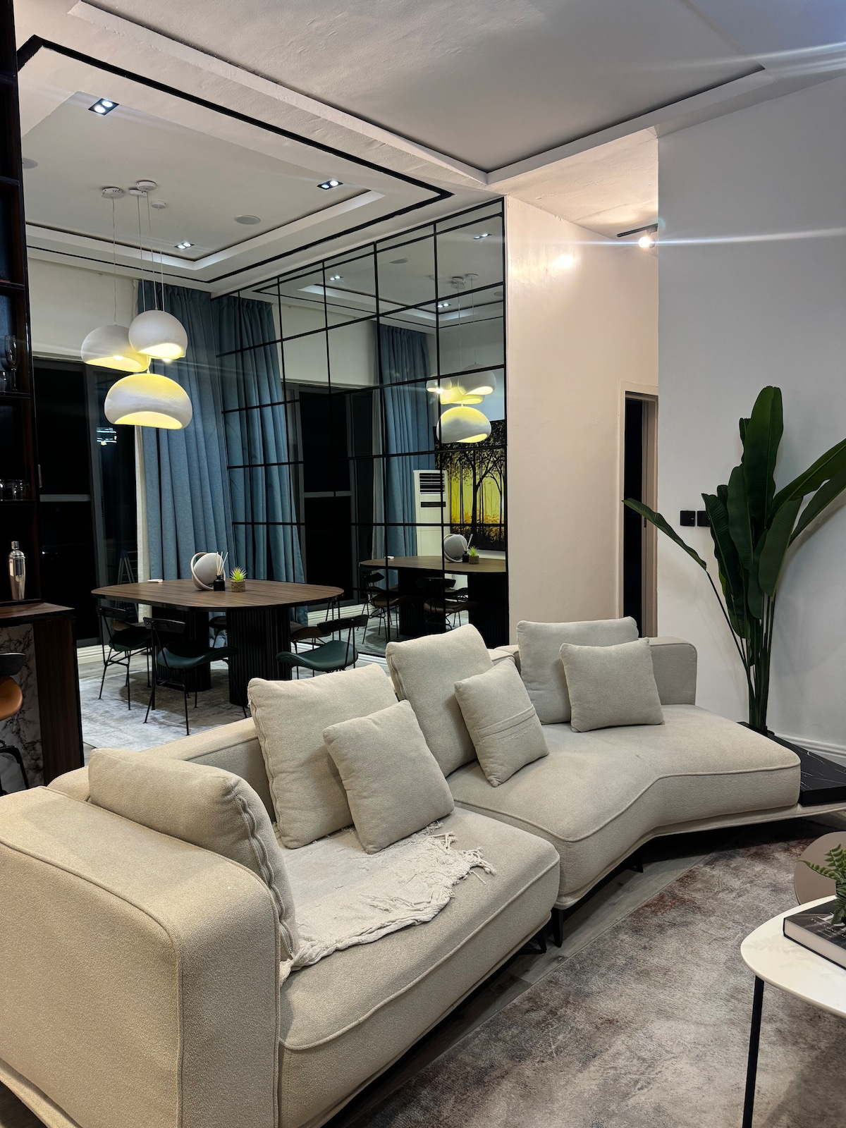 Le flethi likhaya elikude nekhaya. Yayilwe kakuhle ngomnye wabantu abaklami abaphambili ngaphakathi eLagos. Iflethi yangoku entle neyinkimbinkimbi, kodwa ibukeka inomtsalane kwaye ikhululekile. Uya konwabela: ● Ukufikelela lula kwi-VI, i-Oniru, isiqithi seBanana Inkqubo yokubhalisa xa● ufika njengehotele ● I-Smartlock xa ufika ● Ukhuseleko lwe-24hrs, iintsuku eziyi-7 ngeveki ● 24hrs Umbane ngaphandle kokuphazamiseka ●Indawo yokupaka ekhuselekileyo/yasimahla yeendwendwe eziyi-4 Umphathi wendlu● abayi-2 nabantu abacocayo abayi-2 ngaphandle kokubhataliswa