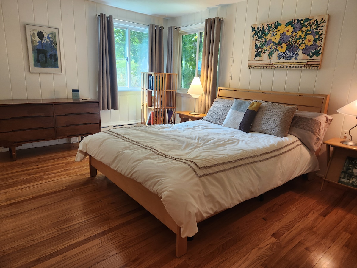 Yonwabela ukuhlala ngoxolo kule ndawo itofotofo, enobuchule. Ifumaneka kwiihektare eziyi-10 zegadi namaplanga, le ndlu isemaphandleni ikwindawo entle yokubuka iWestern Massachusetts - eneendawo ezifana neMoCA, iShelburne Falls, iTanglewood neNorthampton zonke zingekapheli imizuzu eyi-30 ukuya kutsho kwiyure eyi-1 ngemoto. Phezulu kukho ibhedi enkulu nebhafu epheleleyo, ngoxa ezantsi kukho ikhitshi elisebenzayo, idesika yomsebenzi, iifestile ezinkulu nendawo yokuhlala enesofa yokulala epheleleyo. Sihlala kweyona ndlu iphambili esendlini kodwa sihlonipha izinto zakho eziyimfihlo-bona iifoto!