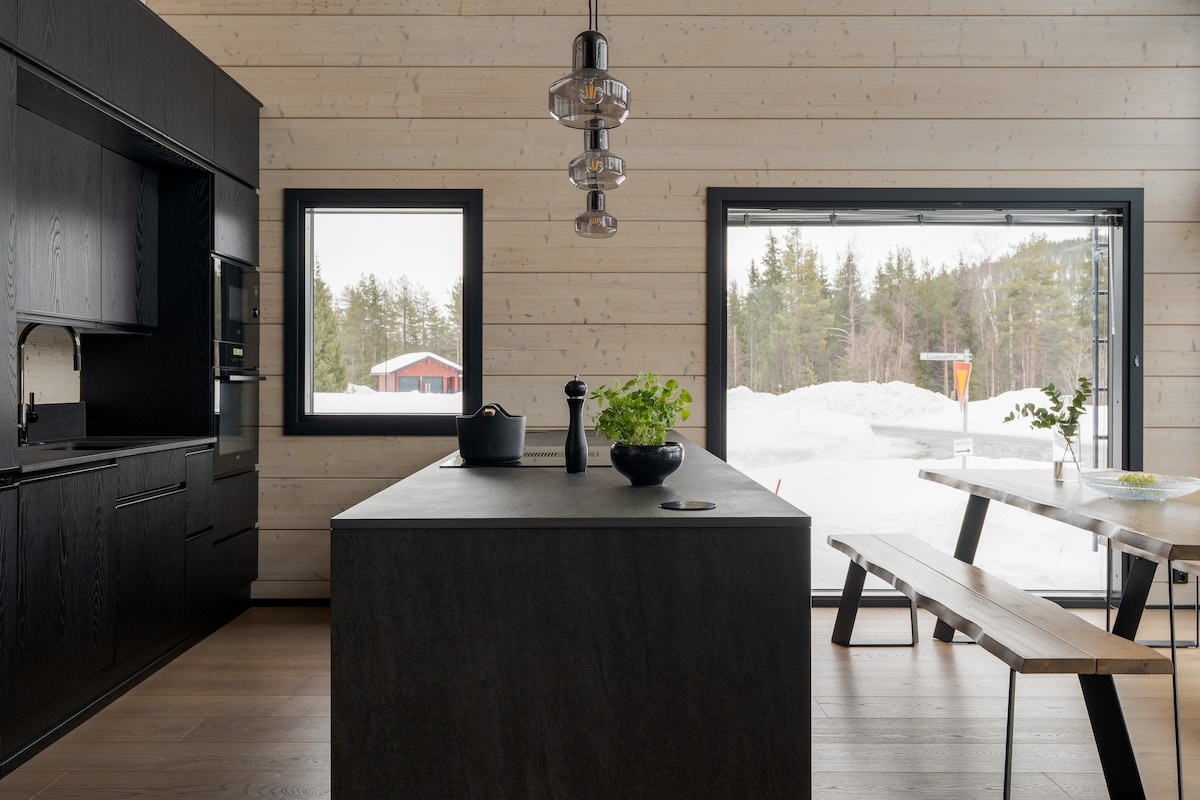 Indlu entsha enendawo yokuphola ekumgangatho ophezulu eLevi. Kufuphi neenkonzo kodwa zikwindawo ezolileyo, ecaleni kwehlathi nomzila wokutyibilika ekhephini. 80m² kwimigangatho emibini; amagumbi okulala ayi-2, i-sauna, amagumbi okuhlambela ayi-2, ikhitshi negumbi lokuhlala apho iifestile ezinkulu zibonisa indawo entle yaseLapland. Ibhafu enamanzi ashushu eterrace. Indawo yokupaka ekhuselweyo ecaleni kwendlu yeholide eyakhiwe ngamaplanga nendawo yokupaka yasimahla ekuqaleni kwendlu yeholide eyakhiwe ngamaplanga. Inqugwala elisetyenziswa nangabanye abantu embindini wendawo. Ikhamera yokhuseleko kwicango langaphambili. I-Wi-Fi yasimahla. ig: levinkuiskaus