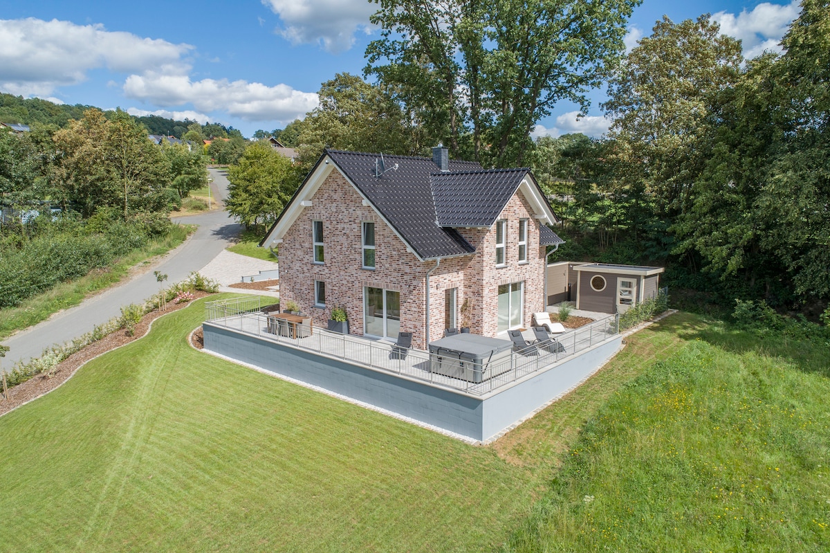 "I-Landhaus" evulekileyo ikwindlu entle nefihlakeleyo emaphandleni. Inendawo eninzi yabantu abayi-6 ukuya kwabayi-7 kwindawo yayo yokuhlala eyi-120 square metres. Iifestile ezinkulu zishiya ukukhanya nomoya omninzi kwindawo yokuhlala nendawo yokutyela evulekileyo, edityaniswe ngqo neveranda evulekileyo kuquka igadi. Phezulu kukho igumbi lokuhlambela elikhulu elinebhafu enamanzi ashushu negumbi lokulala elivulekileyo, kunye nenye indawo yokulala kwigalari evulekileyo.