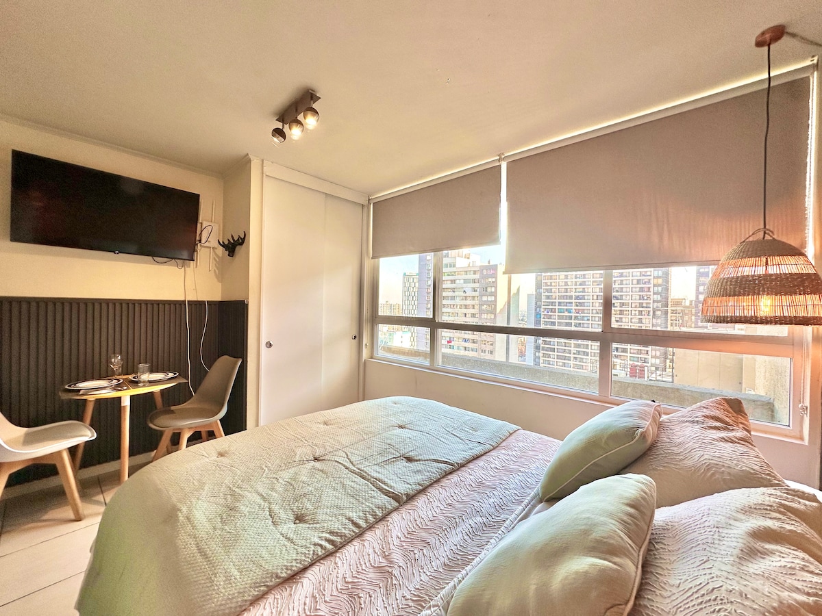 Acogedor y tranquilo estudio con cocina equipada y aire acondicionado, ideal para una estadía cómoda en Santiago. Ubicado a pasos del Parque Quinta Normal y cercano a Metro Gruta de Lourdes y Quinta Normal, con excelente conectividad. Cerca de Matucana 100, museos, Hospital San Juan de Dios, Biblioteca de Santiago, comercios y Autopista Central. A solo 20 min del aeropuerto. El edificio cuenta con plaza elevada con vista al parque y la Basílica de Lourdes. Estacionamiento disponible.