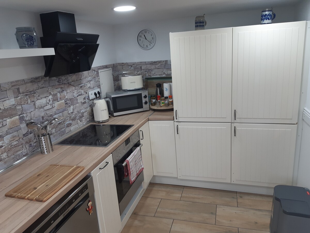 Malunga ne-45 square metres, kuthiwa uza kufika, uhlale phantsi uze uphumle. Uza kuhlala entliziyweni yeRheinhessen kwiHarxheim entle - ilali entle yesidiliya kumasango aseMainz. Le flethi yinxalenye yendlu yentsapho yethu, inendawo yokungena eyahlukileyo nendawo yokupaka iimoto esecaleni kwendlu. Siyilungisile iflethi yethu engaphantsi ngo-2020 saza safaka ifenitshala eninzi ukuze siyithande kakhulu. Iflethi yethu yiflethi okanye indlu ekwicomplex engatshayiyo, izilwanyana zasekhaya azivumelekanga.