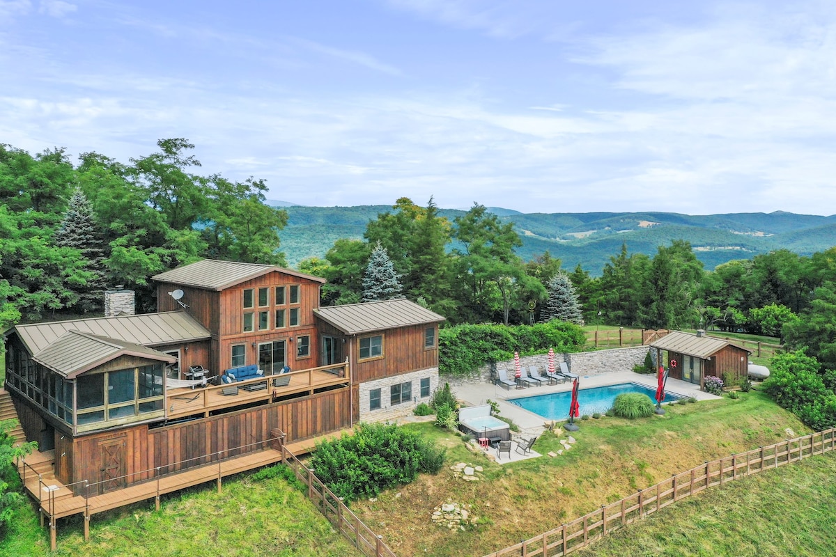** IVIKI YEKRISTIMASI YENZIWE YAFUMANEKA, NGOKU IVULIWE** Iimbono ezibanzi (iidigri eziyi-180+) zeentaba zasendle nezimangalisayo zaseWest Virginia! Le ndlu yamaplanga yale mihla ikwindawo ephezulu entabeni, ijikelezwe ngamahlathi, kwaye inezinto ezifunekayo zemihla ngemihla. Sine-fiber optic Wi-Fi elungele ukufowunelwa ngevidiyo ngaxeshanye ngexesha "lomsebenzi." Ilungele izinja kakhulu, ayibhataliswa. Ukusondela kwiipaki, ukunyuka iintaba, amachibi, imilambo nayo yonke into oyifunayo kwiholide ephandle yeWV!