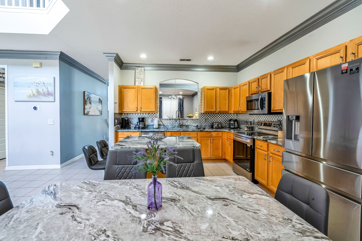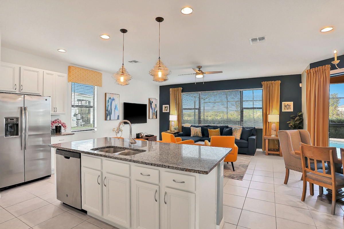Yiya eProvidence Breeze, indawo eqaqambileyo, evulekileyo nengenabala eyi-5BR, eyi-4.5BA eProvidence Golf Resort eDavenport! Emva kosuku kwiipaki, yonwabela ilanga laseFlorida ecaleni kwepuli yakho yabucala, enamanzi ashushu, yitshise into yokosa ephandle, uze uphole ngefilimu oyithandayo kwiTV esecaleni kwepuli kwi-lanai egqunyiweyo. Ngaphakathi, yonwabela imidlalo kwiTV enkulu eyi-75 ", hlala unxibelelene neWiFi ekhawulezayo nendawo elungiselelwe ukusebenzela kuyo uze ulungiselele amatheko entsapho kwikhitshi lale mihla elinezinto ezifunekayo. Yonke into engekhoyo NGUWE!