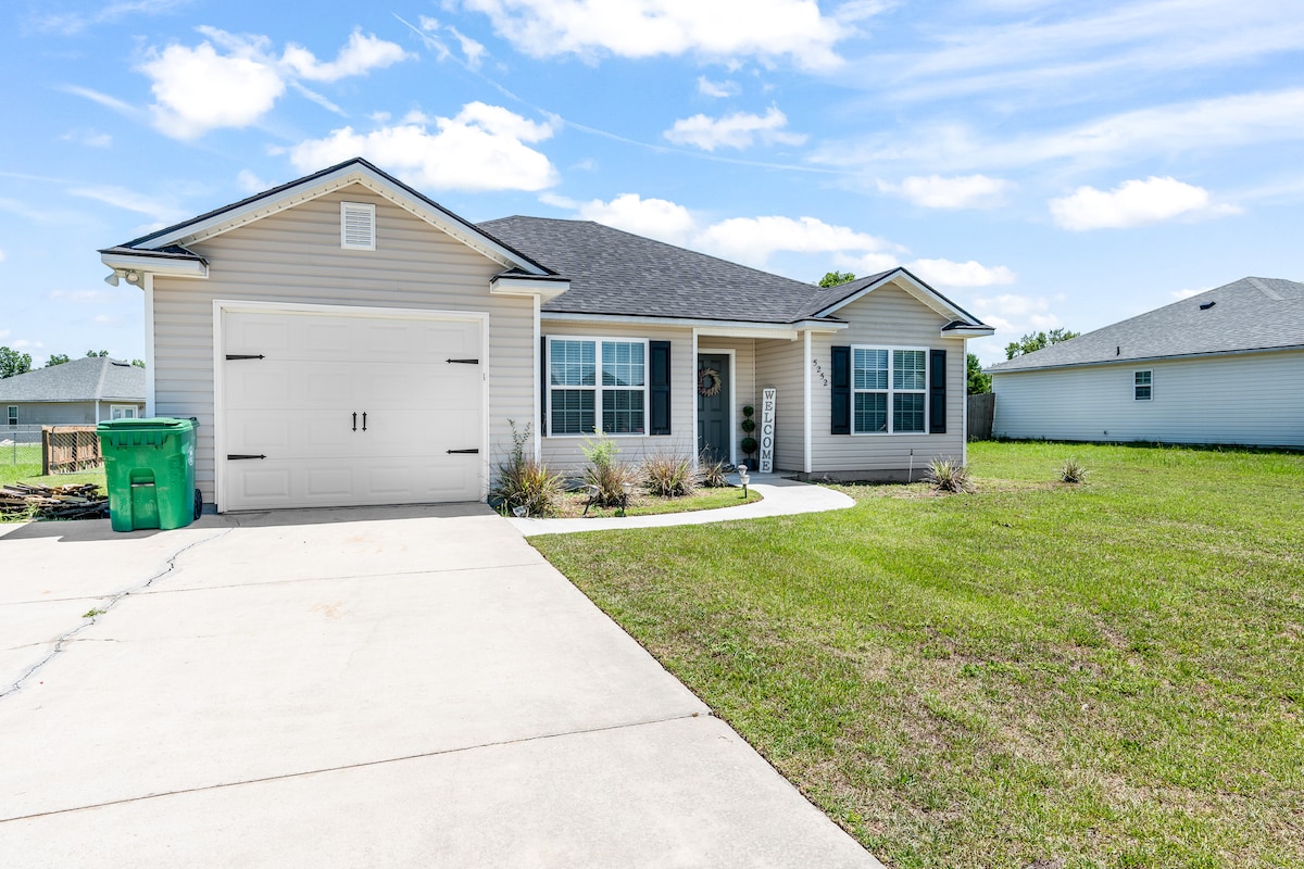 Kanye entliziyweni yaseValdosta! Iibhloko ezimbalwa kuphela ukuya eVSU kunye nemizuzu eyi-15 ngemoto ukuya kwi-Wild Adventures. Izilwanyana zasekhaya zamkelekile! Amagumbi okulala amathathu avulekileyo Iibhedi Ezimbini Ezikumkanikazi Neebhedi Ezimbini Ezimbini I-Queen Air Mattress ne-Pack-n-Play ibhedi yosana Igumbi lokuhlambela elipheleleyo elineesepha! Bonke oomatrasi beMemory Foam abanezinto zebhedi ezitofotofo Imiqamelo eyongezelelekileyo, amashiti neengubo zeendwendwe ukuba ziyafuneka. Ikhitshi elinento yonke elinezixhobo, iziqholo neKeurig Kukho ii-pods zekofu, iti ne-creamer. Ibiyelwe ngasemva eyadini eneveranda etofotofo!