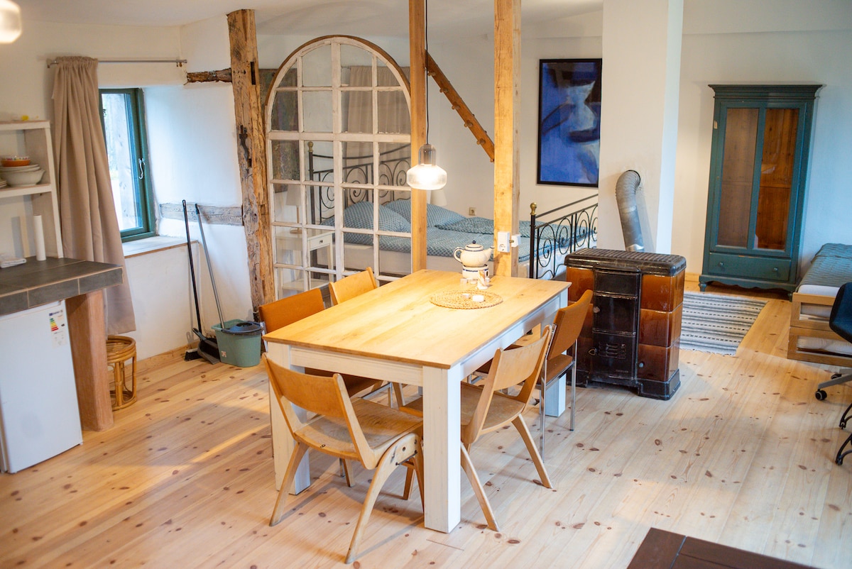 Ubhukisha i-2018 ilungiswe ngothando kwaye inefenitshala ye-80 square meter kwiflethi entle yaseWendland. Le flethi ifumaneka kakuhle phakathi kwegadi enkulu ephilayo kunye negalufa enomngxuma oyi-18. Igadi kunye ne-meadow zikunika amathuba amaninzi okuphumla nokonwabela indalo. Phantsi kweflethi okanye indlu ekwicomplex kukho umdla wonyango lomzimba, apho unokubhukisha khona unyango. Ungafumana okungakumbi ngale ndawo ku-www.zernien.de.