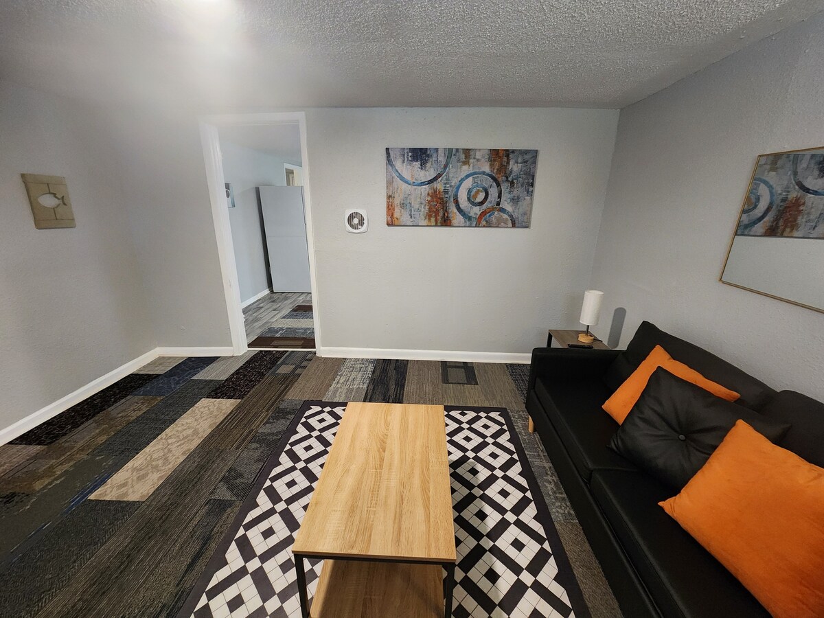 This cozy and spacious 3-bedroom, 1-bathroom house is perfect for families, groups, or business travelers looking for a comfortable stay in a great neighborhood. Each bedroom is furnished with comfortable beds, fresh linens, and plenty of storage space. Relax in the inviting living area, cook your favorite meals in the fully equipped kitchen, and take advantage of the in-unit washer and dryer. Enjoy fast Wi-Fi, a smart TV for streaming, and climate control. NO CLEANING FEE!