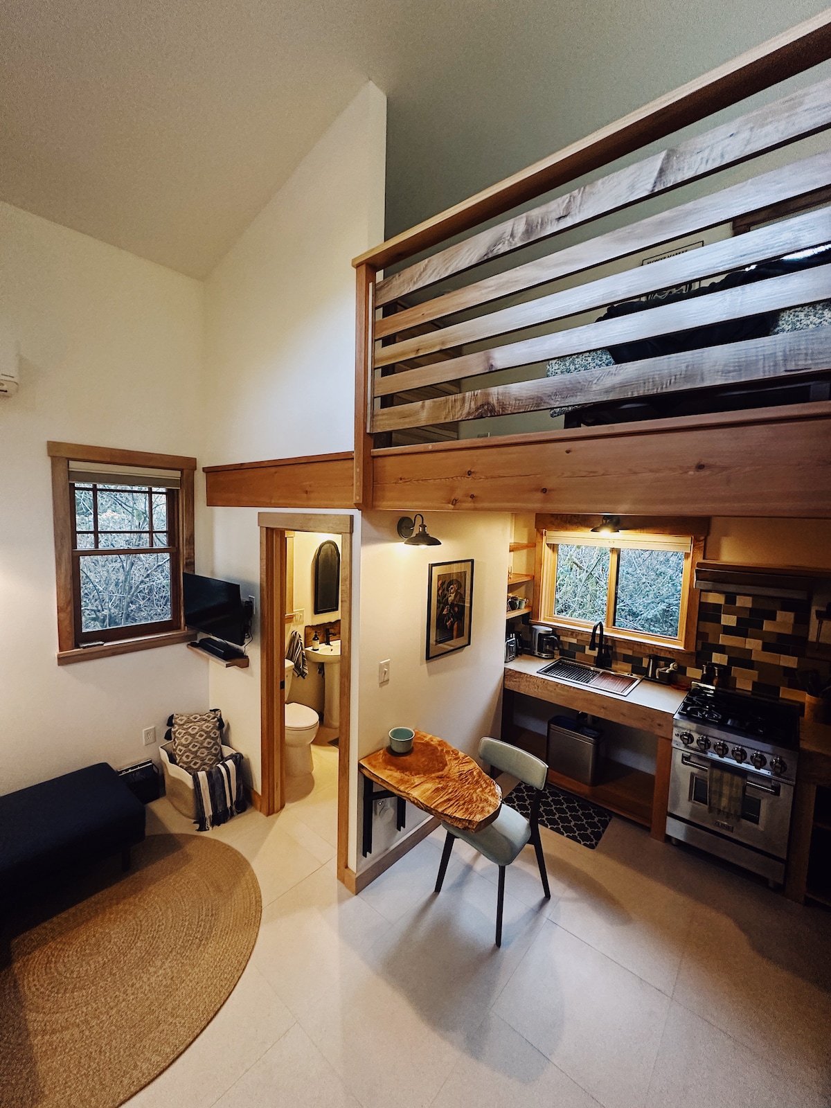 Wamkelekile kwiCoho Cabin, indlu encinci/indlu yamaplanga ephezu kweSkagit Bay eneendawo eziphambi kwamanzi ezijonge ngqo izilwanyana zasendle, iWhidbey Island kunye neOlimpiki Mts. Yakhiwe ngo-2007, yindlu yamaplanga eyiyo, eyenziwe ngokwezifiso ngaphandle kweAlaskan Yellow Cedar. Yonwabela ubuhle basezilalini, imigangatho enamanzi ashushu, ibhedi etofotofo, indawo yokulala ephandle nendawo yakho wedwa. Ifumaneka kwimizuzu eyi-10. entshona yeLa Conner, iindwendwe zinokubuka iivenkile, zonwabele ukunyuka intaba ezikhethekileyo, okanye zonwabele ukuhambahamba elunxwemeni.