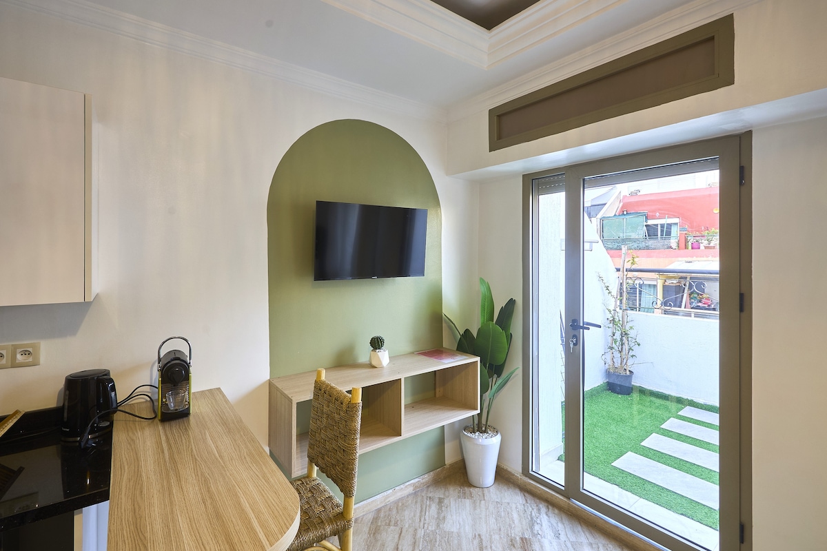 Elegant Studio with Private Terrace & Gym Access