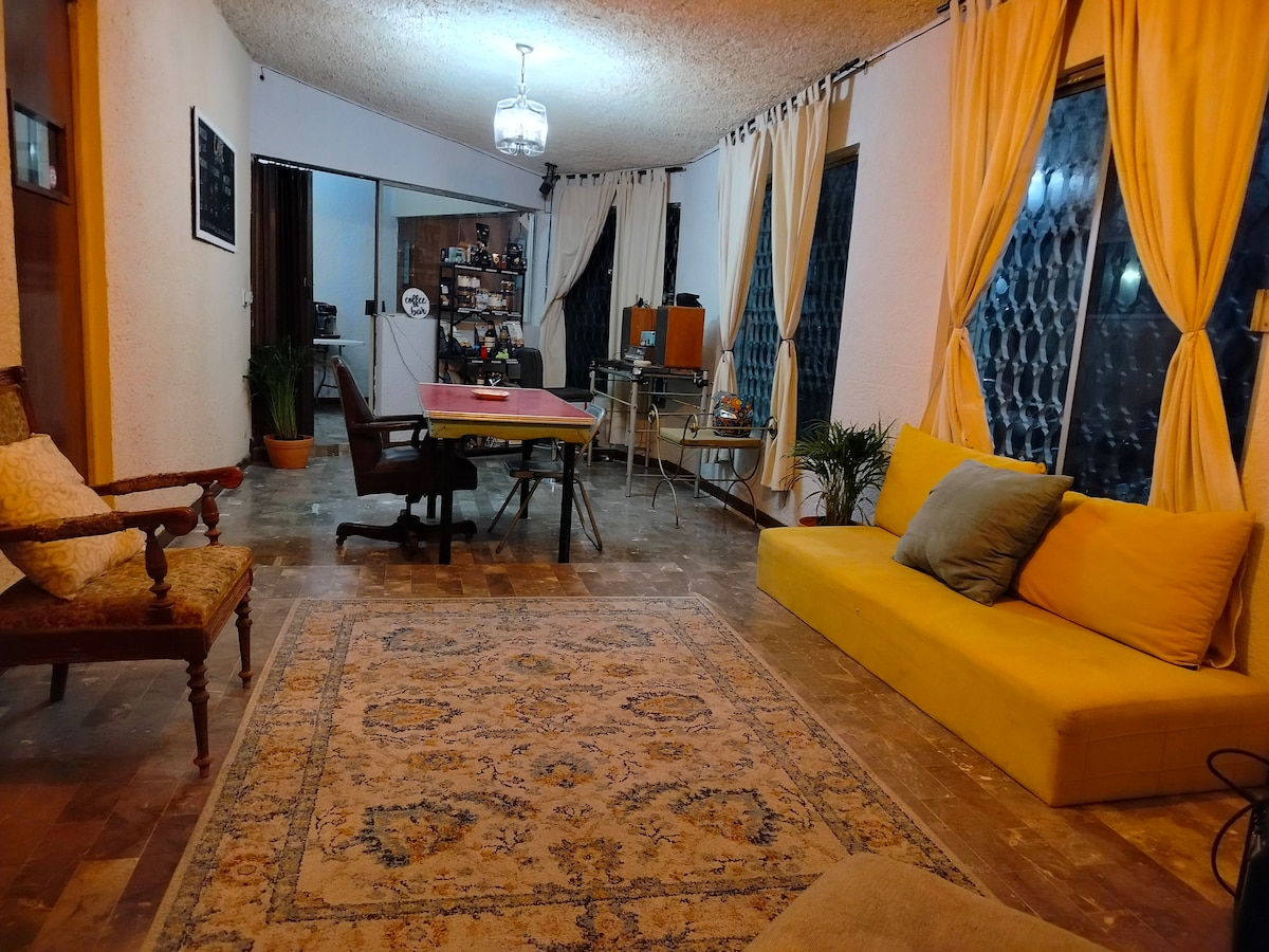 Indawo yakho eSouth Monterrey! Indlu enendawo entle; imizuzu ukusuka eSan Pedro, eCarretera Nacional, eUANL Mederos, eTecnológico de Monterrey naseGarza Lagüera. Amagumbi amabini okulala anomoya obandayo okanye oshushu aneebhedi zikaKumkanikazi noKing Igumbi lokuhlala elineSmartTV; elineenkonzo zeClaro Video, iParamount + neNetflix ezineentengiso. Isofa eyi-1.88cm x 88cm enokusetyenziswa njengebhedi yesofa. Igumbi lokutyela nekhitshi elinento yonke.