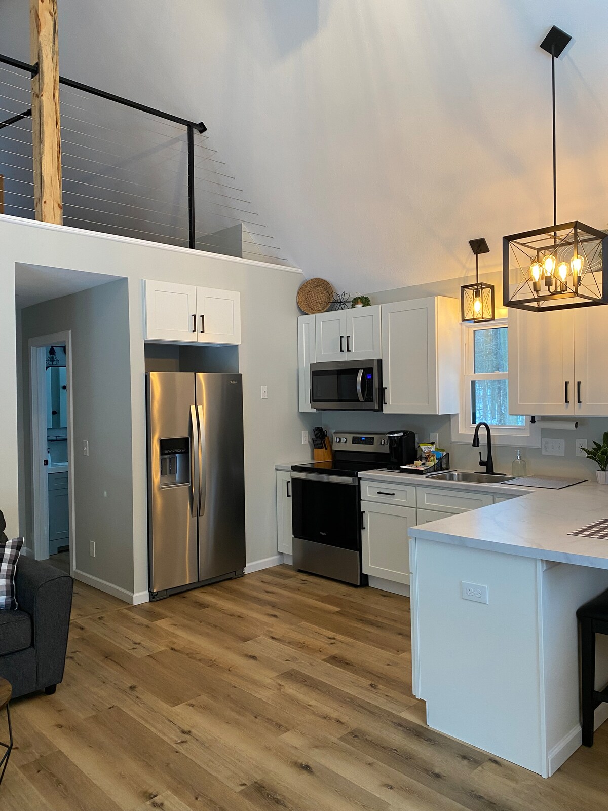 Phola kule ndawo itofotofo yegaraji yelizwe elitofotofo eGrand River Valley. Indawo yokuqala yokumisa ukhenketho lwakho lwewayini ikumgama wemizuzu eyi-4 kunye nezinye ezingaphezu kwe-30 onokuzibuka. Ndwendwela iLake Erie, iThompson Ledges, iGeauga Park District Observatory, okanye ibhulorho egqunyiweyo. Ikhitshi elincinci w/ ifriji encinci, i-microwave, i-Keurig kunye nesinki. Ibhafu enomtsalane w/ stand up ishawa Ikhowudi yakho yokungena kwindawo yomlilo yombane I-King size bed Rustic wood rockers & table Ukufikelela kwibhafu enamanzi ashushu esetyenziswa nangabanye abantu kwibhafu enamanzi ashushu, umngxuma womlilo ongasemva neveranda