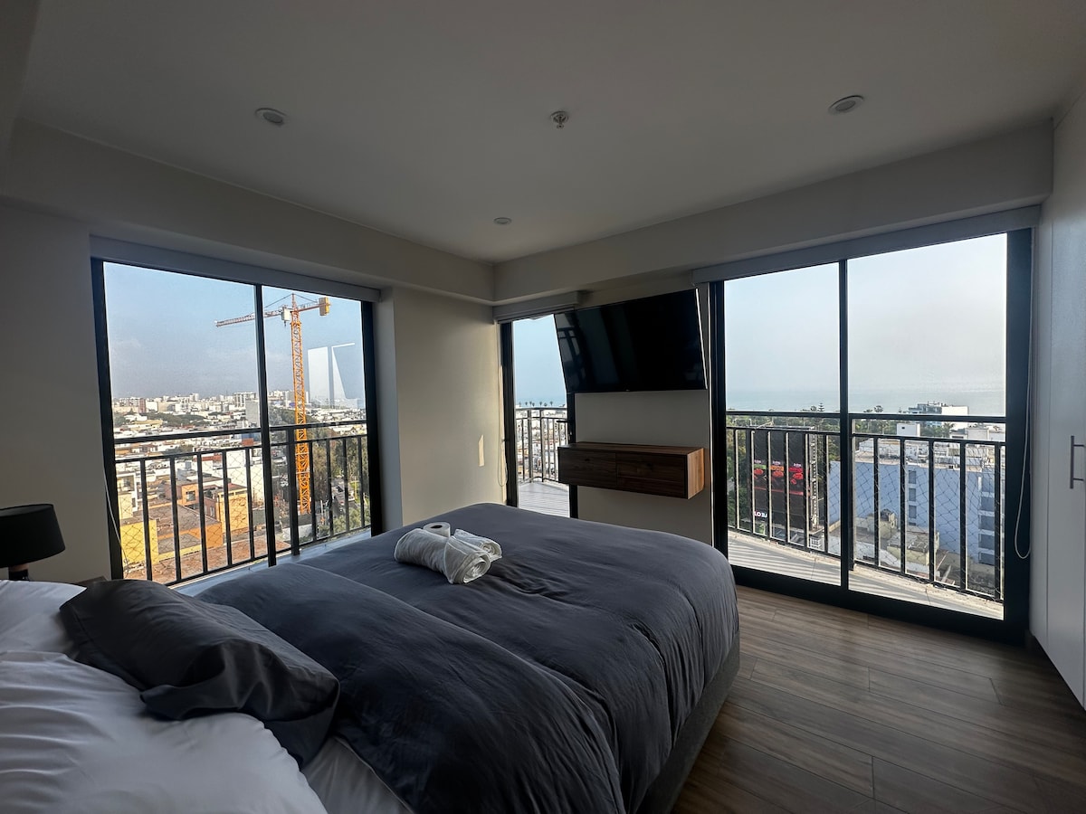 This apartment stands out from the rest because it has a FRONT OCEAN VIEW from every room. It's the perfect combination of palm trees and Caribbean-style sea, but in the Peruvian capital. It's a PREMIUM experience. - The Green Coast at 300 m² - Cafes and shops at 50 m² - A 10-minute drive from Lima's most touristy districts: Miraflores and Barranco. - Close to Lima's best restaurants. - Public transportation at 50 m² - In front of a Malecón (residential area) We look forward to seeing you!