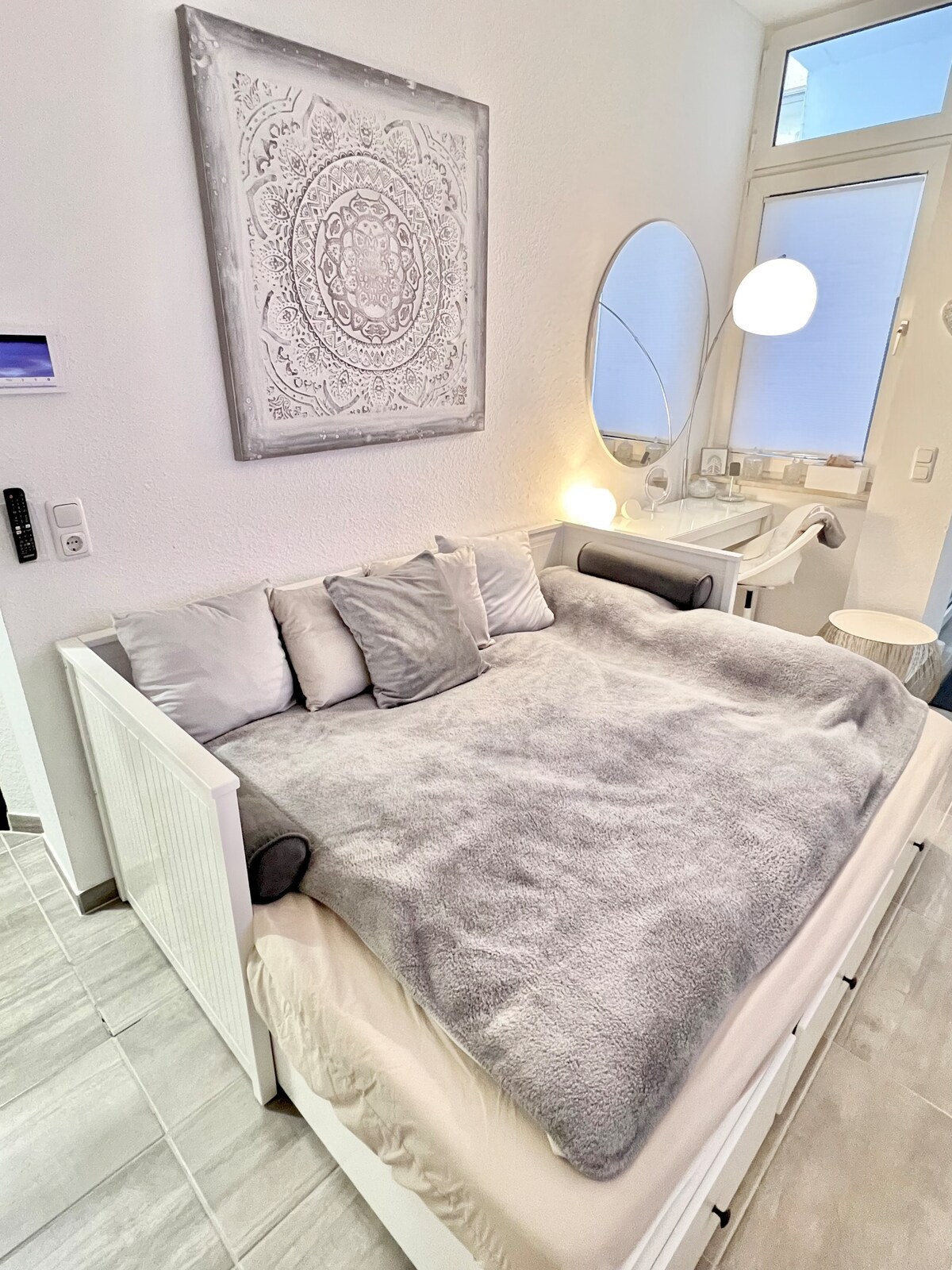 Ukusuka kule ndawo yokuhlala isembindini, awunangxaki nazo zonke iindawo ezibalulekileyo uze wonwabele ukuhlala kwindawo ethe cwaka embindini wedolophu endala yaseMainz. Iindawo ezininzi ezinomtsalane ezifana necawa enkulu, ibhanki yaseRhine, imarike... zikufuphi ngeenyawo. Isandul 'ukulungiswa ibe yale mihla, inebhedi eyi-90x200 (yasimahla yabantu abayi-2), i-43 " UHD Smart TV eneMagenta TV, ikhitshi elincinci elinezixhobo nezinto zokutya ezincinci negumbi lokuhlambela elineshawa yokungena.