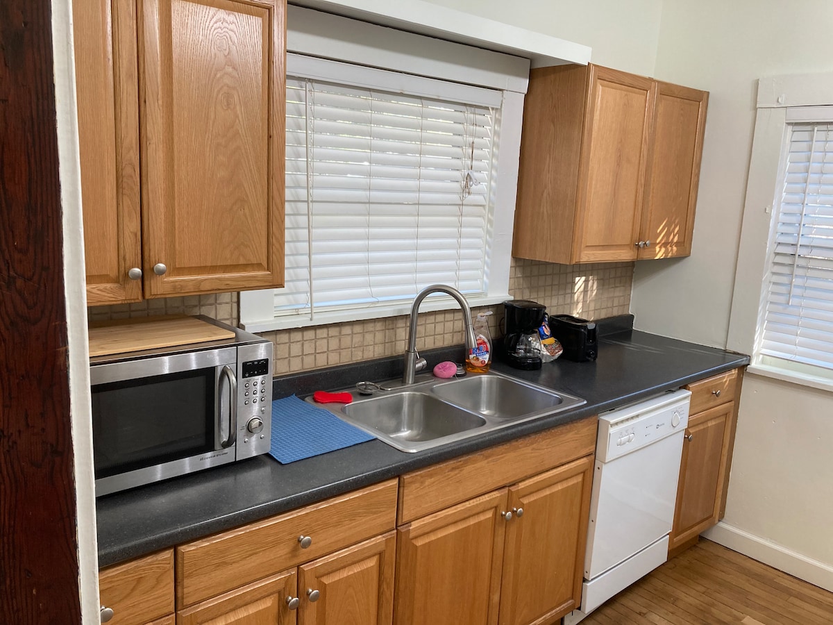 Wamkelekile kwi-Ninth Street Suites - ikhaya elitofotofo, elitofotofo, elisembindini wedolophu yaseManhattan! I-Suite B yiflethi ekumgangatho wesibini ehlaziyiweyo enendawo yokungena eyahlukileyo, ikhitshi, igumbi lokuhlambela, ibhedi enkulu nesofa yokukhupha - zonke zikumgama weenyawo ukusuka edolophini, eAggieville, eKState, kwiPaki Yesixeko nokunye okuninzi! Kuba kukho indawo yokupaka yabucala engaphandle kwesitrato, izinto zebhedi ezicocekileyo ezicocekileyo, indawo ephandle nezinto ezinokusetyenziswa ezininzi, iNinth Street Suites ilungele ukuhlala kwakho eLittle Apple!
