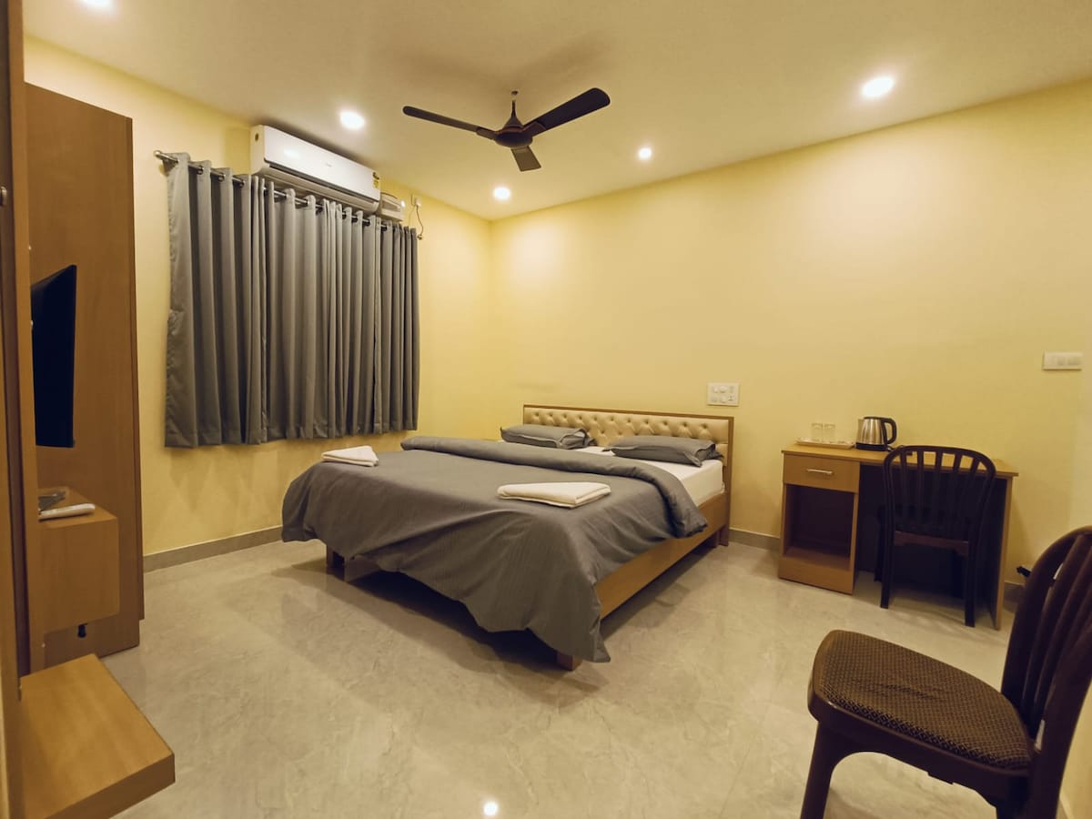 I-1BHK etofotofo e-Gopal Homestay ene-AC & Non-AC onokukhetha kuyo, elungele abantu abatshatileyo, abahamba bodwa okanye amaqela amancinci. Yonwabela ikhitshi elinento yonke, i-Wi-Fi ekhawulezayo, umbane onokuthenjwa, nendawo yokupaka ekhuselekileyo. Ifumaneka kwingingqi ezolileyo nekhuselekileyo kwimizuzu nje embalwa ukusuka kwiilwandle ezintle, iKrishna Temple, iManipal, kunye nombindi wesixeko saseUdupi. Kulala abantu abayi-2 bekhululekile nebhedi elala abantu ababini. Ukuzingenela neCCTV kuqinisekisa ukuba indawo yokuhlala ayinangxaki. Isazisi esisemthethweni esichanileyo siyafuneka.