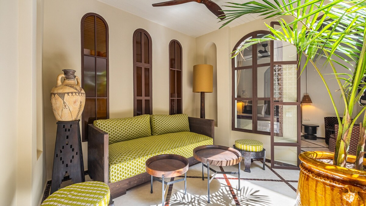 Phumla uze uphole kule ndawo izolileyo nehonjisiweyo. Le riad engasoze ilibaleke kuyo nantoni na eqhelekileyo enendlela yokuyila ejikeleze iveranda ejikelezayo kunye nezitepsi ezineendonga eziye zadityaniswa kwizitena ezibomvu. Ukulinganisela le ndlela yokuyila ibonisa yonke i-riad igqityiwe nge-tadelakt emhlophe kunye neethayile ezimhlophe ze-bejemat. Le ndawo ibonakala ilula kwaye inomoya, ibe iveranda entle eseluphahleni iquka ipuli yokuthambisa imvakalelo.