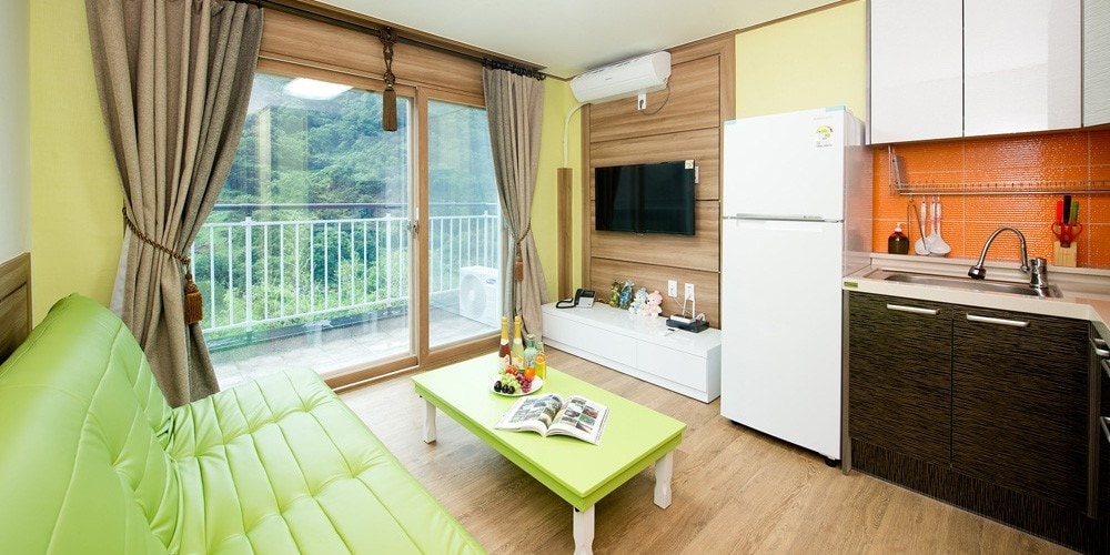 I-Harang Naye ikwindawo ecacileyo ye-Baegunsan Mountain nalapho intlambo ihamba khona. Yindawo yokuhlala ethe cwaka netofotofo. Izinto eziyimfihlo zeendwendwe zibalulekile. Igumbi lika-201 lizitepsi zangaphakathi ezenziwe ngendlela ye-loft ukuze ungene kwigumbi lokulala nakwi-terrace. Izinto ezinokusetyenziswa ezifana nebhafu evulekileyo yabucala, ithala elivulekileyo neprojekthi yomqadi. * Igumbi elincinci elifakwe kwi-terrace lixhotyiswe ngeprojektha yomqadi, ibe kukho ibhedi esesofeni, ngoko ikwalungele ukusebenza okanye ukufunda. Kwindawo yakho emnandi nekhuselekileyo, umlilo wamalahle (i-firearm) i-barbecue awuvumelekanga, kodwa kukho i-grill yombane kunye nesitshisi. Sikulungiselele ukuba upheke uze utye ukutya okugalelweyo okanye okubilisayo. * Isinki yasekhitshini yafakwa kwithala ukuze unciphise intshukumo yokunyuka nokuhla uye kumgangatho wokuqala. Thatha ikhefu kunye nentsapho okanye umthandi kwikhaya elizolileyo:)