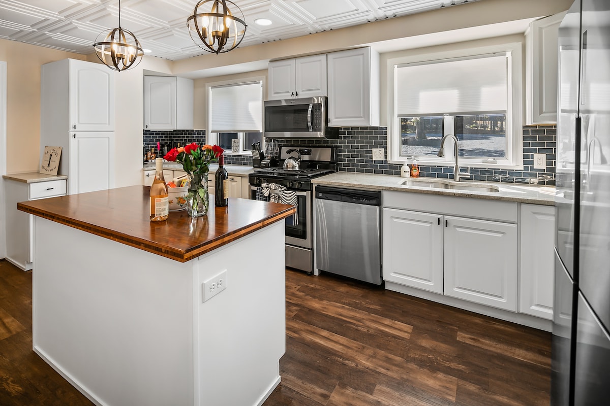 Ukuhlala apha yinto enokonwatyelwa! Indawo efanelekileyo yeqela okanye iintsapho ezininzi. * Ibhafu enamanzi ashushu *Game Rm: Poker Table, Ping Pong, Air Hockey, Basketball, Arcade, Skee Ball & Large Screen TV. * Igumbi Lemuvi *2 King Bedrooms 1 Queen & 2 Bunk rooms Izinto Ezinokusetyenziswa ziyafumaneka - $ 10/ umntu ngosuku ngeepuli, ulwandle Neziko Lokujima.