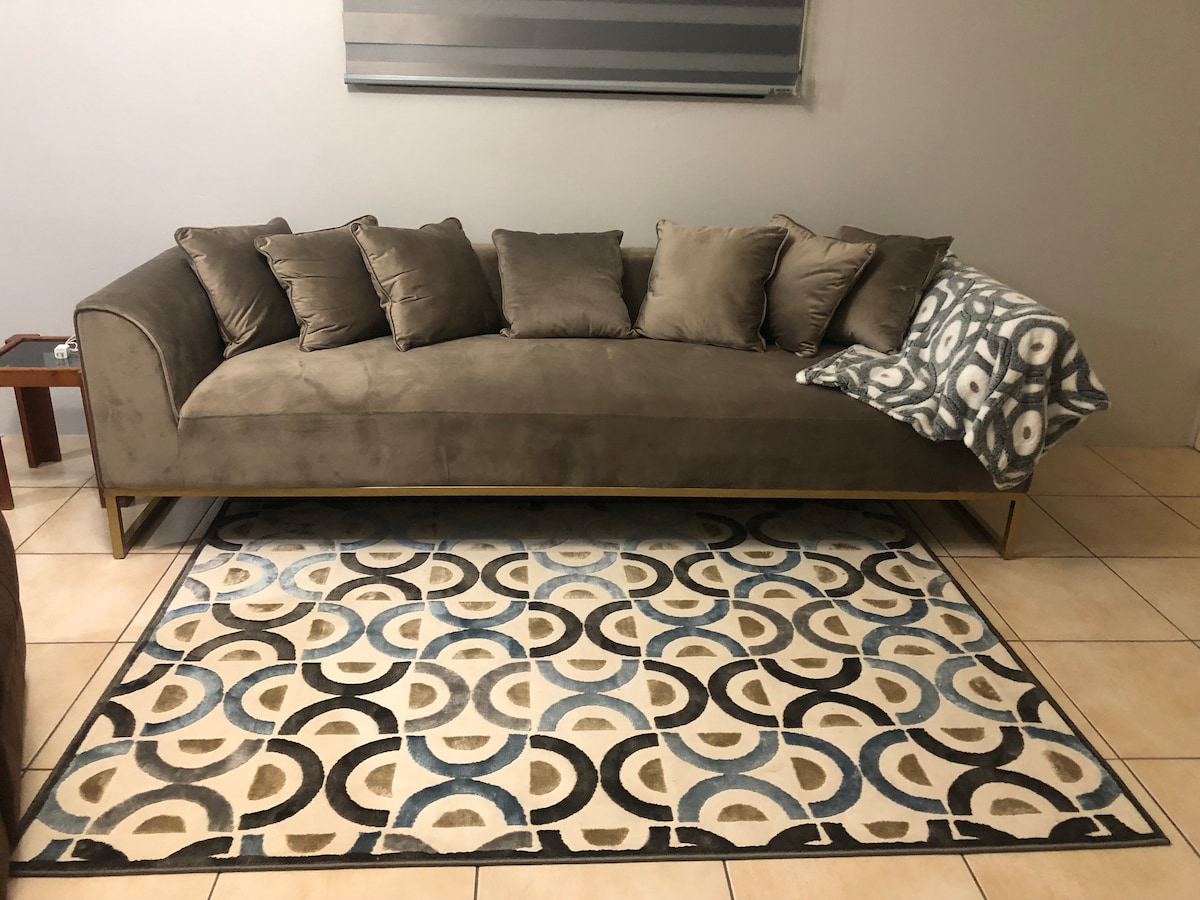 Yonwabela izinto ezihonjiswe kakuhle kule condo esembindini. Imizuzu nje eyi-6 ukusuka kwisikhululo seenqwelo-moya, iTrincity Mall namanye amaziko okuthenga; kunye nemizuzu nje eyi-18 ukusuka kwisixeko sasePort of Spain. Ilungele uhambo lwezoshishino kunye nesibini/abahlobo abaphum 'izandla Phola kwigumbi lethu lokulala lale mihla elineSpa eyenziwe ngeBhafu, okanye ube nesiselo esikhethayo kwiiglasi zethu zewayini zeConcha Y Toro ngoxa ufunda incwadi kwindawo yethu yokuhlala. Kwakhona iqulethe i-1 Sleeper Bed, i-Wi-Fi, Izixhobo eziphakamileyo, iikhamera zoKhuseleko. Akutshaywa.