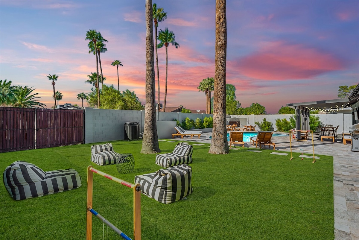 Wamkelekile kwi-Sunset Villa eScottsdale, indawo engcwele entlango ekuxhotyiswe ngokupheleleyo ukuze ikunike eyona ndawo inzulu yokuphumla, ukuhleka okuvuyisayo, kunye neenkumbulo ezintle. Le ndawo enamagumbi okulala amathathu yaseScottsdale ifumaneka kwiikhilomitha ezimbini kuphela ukusuka kwi-Old Town Scottsdale, kwiivenkile zokutyela neebhari. Enoba kukupheka isidlo kwikhitshi elivulekileyo, ukuphumla ecaleni kwepuli enamanzi ashushu (ngemali eyongezelelekileyo), ukuphumla kwibhafu enamanzi ashushu, okanye ukusela ii-cocktail ngaphambi kokuphuma ebusuku, uza kufumana into onokuyonwabela entle apha.