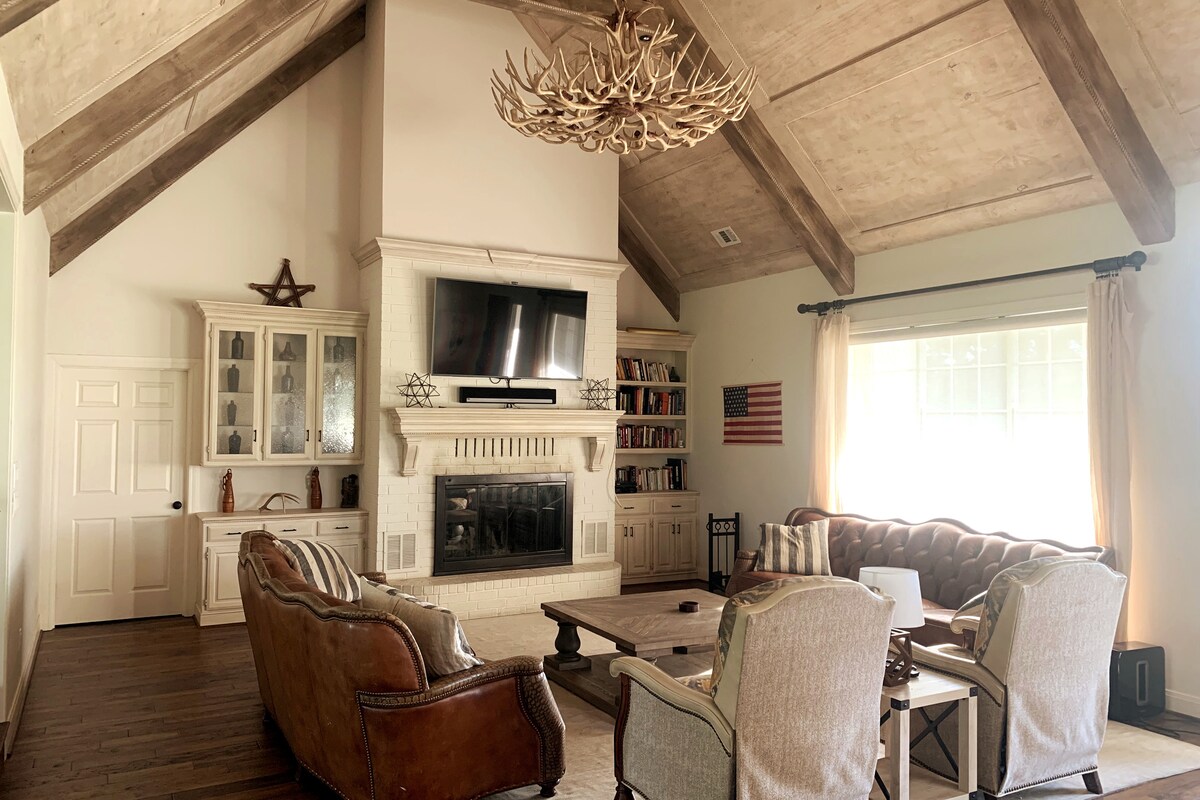 Le ndlu yamaplanga yeyona ndawo ifanelekileyo onokuya kuyo ebomini obuxakekileyo neteknoloji yesixeko. Kanye phakathi kweHouston neDallas. Yiza wonwabele impela-veki enoxolo kwindlu yamabali amabini entle enee-acre eziyi-16 zendlu onokuyibuka. Le ndlu yamaplanga yasentshona inendawo enkulu yokuhlala iqela elikhulu elinezinto ezinokusetyenziswa eziliqela ezifana nenkundla yebhola yomnyazi ephandle, ukuloba nomngxuma womlilo kangangeentsuku eziphantsi kweenkwenkwezi okanye ii- 'mores kunye nabantu obathandayo. Kwakhona, sisongela kwiveranda ngezitulo ezijikelezayo kunye nokujinga.