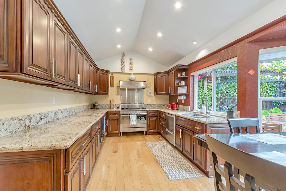 Yonwabela isitayile entliziyweni yeSilicon Valley. Iyadi yethu engasemva ineendawo zokuphola ezinoxolo, ezinemithi eneziqhamo nezibane ezingqongileyo. Izinto ezitofotofo zale mihla zilindile ngaphakathi endlini, ukususela kwifenitshala entsha, i-intanethi enesantya esiphezulu, iofisi yabaphathi kunye nendawo yokutyela enkulu. Izinto zakho ezinokonwatyelwa zokupheka zixhaswa likhitshi elinento yonke kunye nezinto zethu ezimnandi. Ngokukhuselwa kweADT nendawo yokupaka enobubele, kulula ukuyisebenzisa. Zonke zikwindawo ezolileyo, ekumgama wemizuzu ukusuka kwiindawo zeteknoloji nokuzonwabisa.