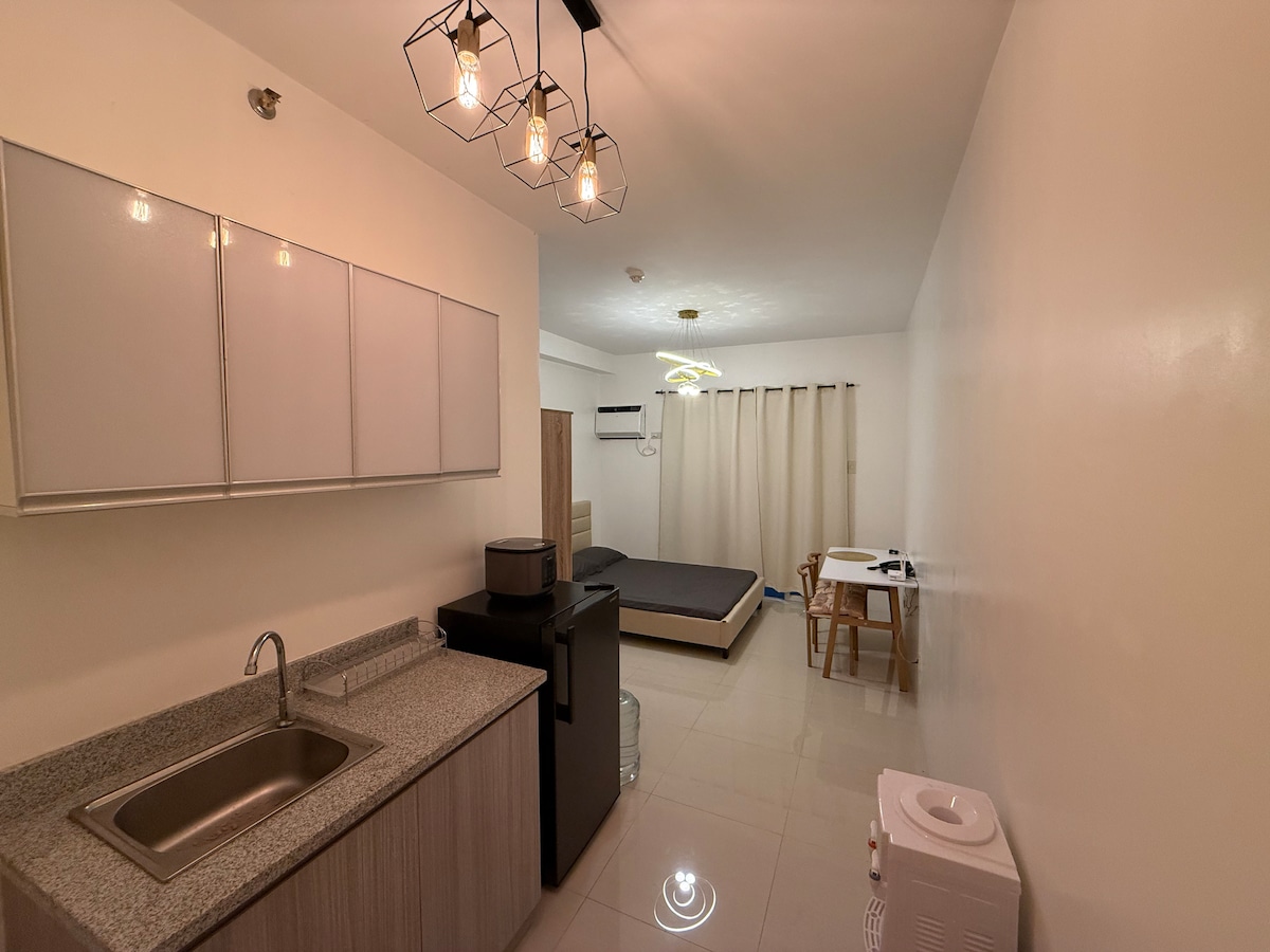 Phola kule flethi itofotofo, yale mihla nevuyisayo eyi-1BR ekwindawo ENYE yaseManchester, eMactan Newtown, kwiSixeko saseLapu-lapu. Apho isondele khona kwii-resort ezineenkwenkwezi eziyi-5, iivenkile zokutyela, iivenkile zekofu, neevenkile ezinkulu. Imizuzu eyi-10 ukuya kweyi-15 ngemoto ukusuka kwisikhululo seenqwelo-moya saseMactan -Ukungena KwiSmart Lock - i-wifi eyi-50 Mbps - I-Netflix yasimahla - Ikhitshi elinento yonke (ISAZISO ESIBALULEKILEYO: Nceda uhlole iingcaciso zendlu ezingezantsi ngaphambi kokuba ubhukishe)