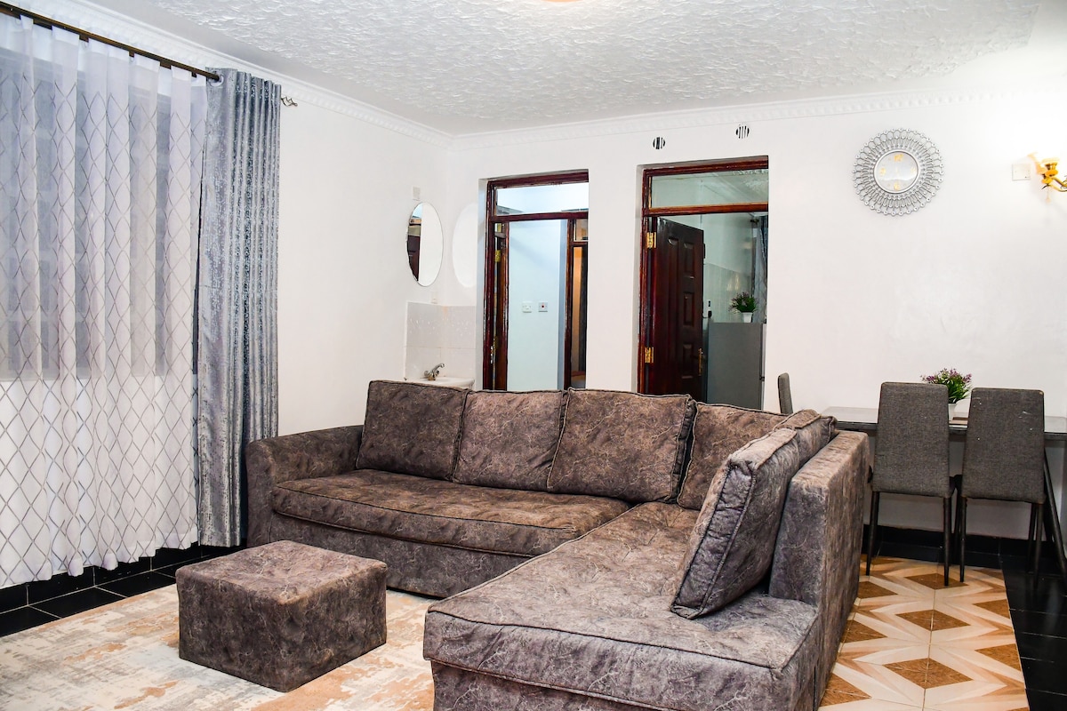 Iflethi enkulu enamagumbi okulala amabini kwindawo ekhuselekileyo ebiyelweyo kwindlela yaseMombasa: umzuzu omnye ngemoto ukuya eCrystal Rivers Mall, imizuzu emi-5 ngemoto ukuya eSignature Mall nase-Oloho Mall, imizuzu emi-6 ngemoto ukuya eMavuno HillCity, kufutshane ne-Athi River-Kitengela Interchange, imizuzu engama-21 ngemoto ukuya ukusuka kwisikhululo seenqwelo-moya saseJKIA kunye neSGR Nairobi Train Station (imizuzu eli-10 ngeNairobi Expressway).Ilungele ukuhlala ixesha elide nelifutshane. I-Wifi, iNetflix, indawo yokupaka iyafumaneka ibe ikhuselekile. Akuvumelekanga iipati.