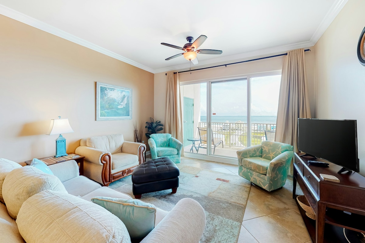 Yiya kwi-bayfront epholileyo ehlala kwiflethi yethu epholileyo yaseFort Morgan! Le ndawo yeholide enamagumbi okulala ayi-2 neebhafu eziyi-2 ineendawo ezintle zeMobile Bay kwiibhalkhoni ezimbini zabucala, ulwandle ngqo neGulf, nezinto ezinokusetyenziswa ezifana nezikhephe, ibhafu enamanzi ashushu neepuli. Yenzelwe ukuba itofotofo uze uphumle, phola ngendlela yonxweme yale mihla. Ilungele ukuhamba ngesikhephe, ukuloba nokuzola ngaselwandle kuhlala kwintsapho eneelifti ekulula ukufikelela kuzo.