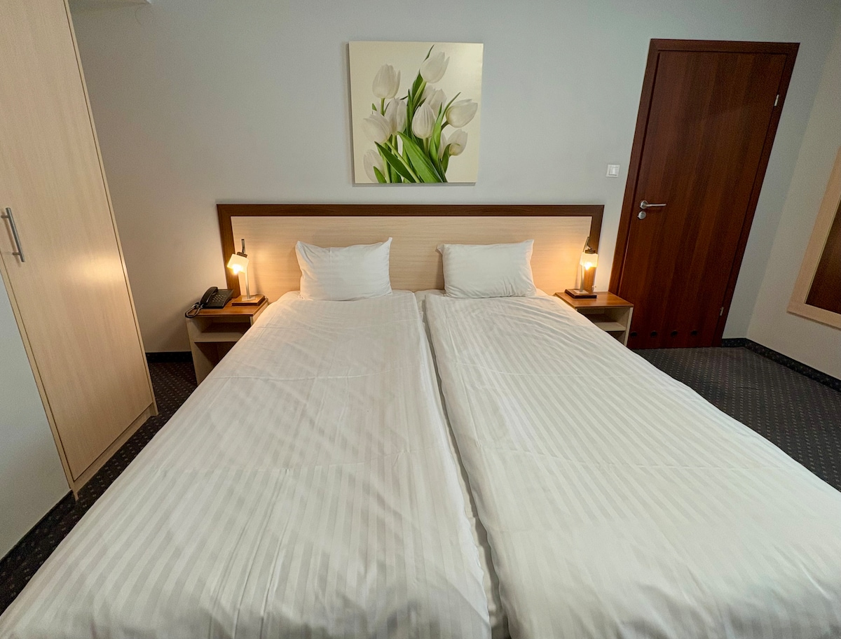 Our Twin Room is 16 m² and features two twin beds, a sitting area, and heating. The private ensuite includes a shower, eco-friendly toiletries, a hair dryer, and fresh towels. Stay connected with free Wi-Fi and unwind with a flat-screen TV with satellite channels. Pet-friendly, and an iron is available on request.